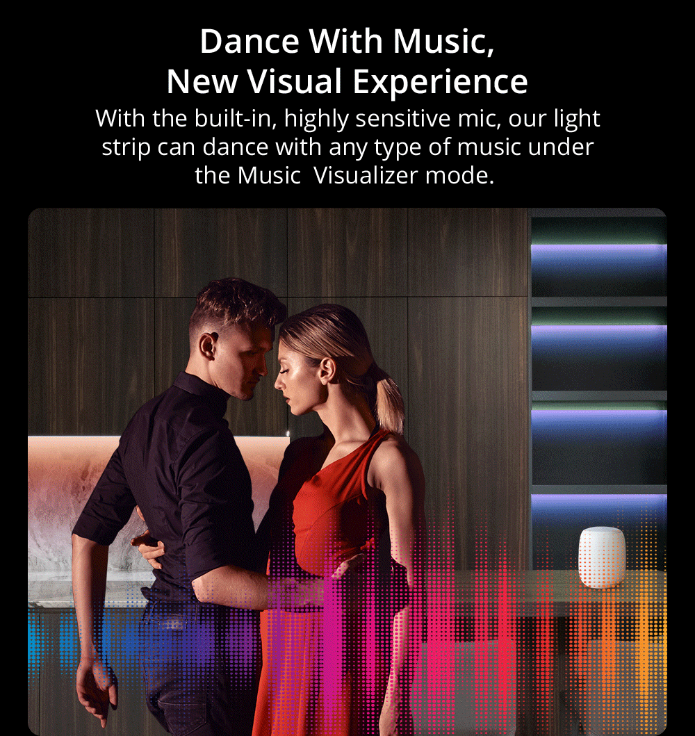 Este Smart LED Light Strip regulável tem modos de iluminação padrão que podem estar de acordo com as suas necessidades funcionais e decorativas, enquanto o recurso DIY liberta a sua criatividade sem qualquer limite.