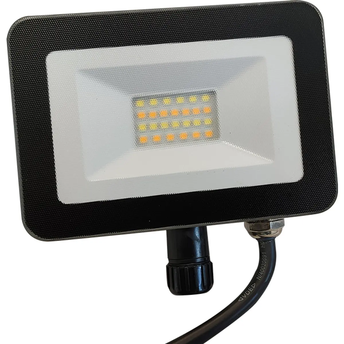 Projetor LED de 3 cores (branco quente/neutro/frio) selecionável através de botão.