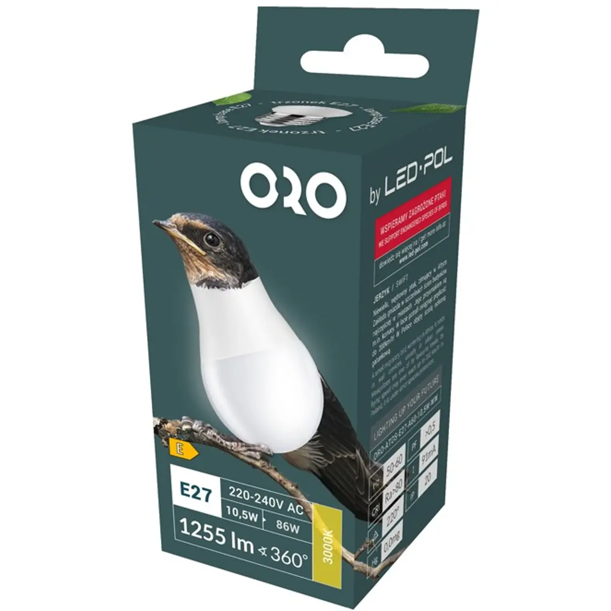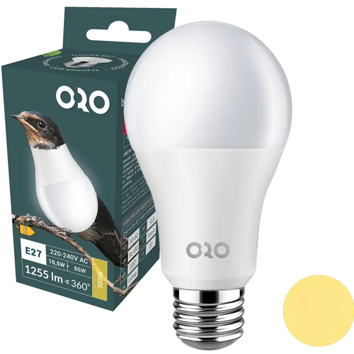 LED POL ORO-ATOS-E27-A60-10,5W-WW - Lâmpada E27 LED 230V 10.5W 3000K (branco quente) 1255lm