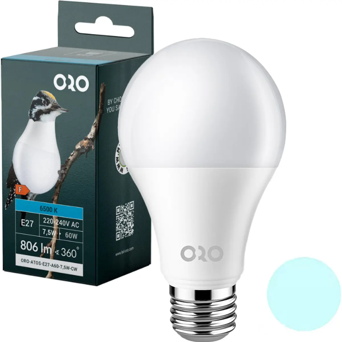 LED POL ORO-ATOS-E27-A60-7,5W-CW - Lâmpada E27 LED 230V 7.5W 6500K (branco frio) 806lm
