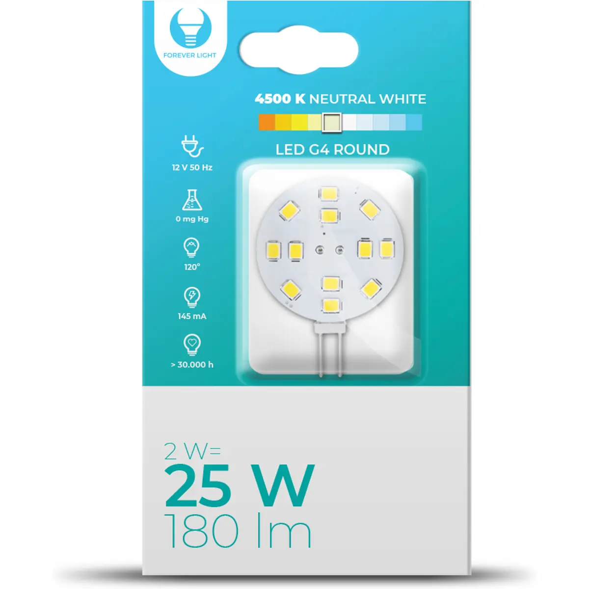 - Temperatura de cor: 4500K (branco neutro)
