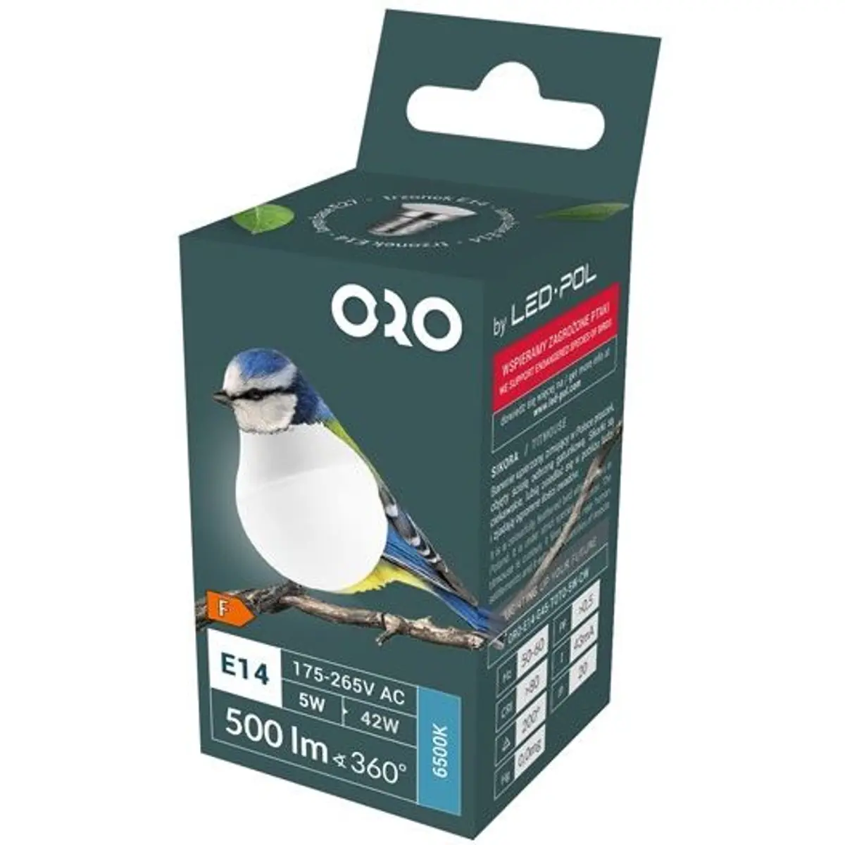 LED POL ORO-E14-G45-TOTO-5W-CW - Lâmpada LED E14 G45 230V 5W 6500K (branco frio) 500lm