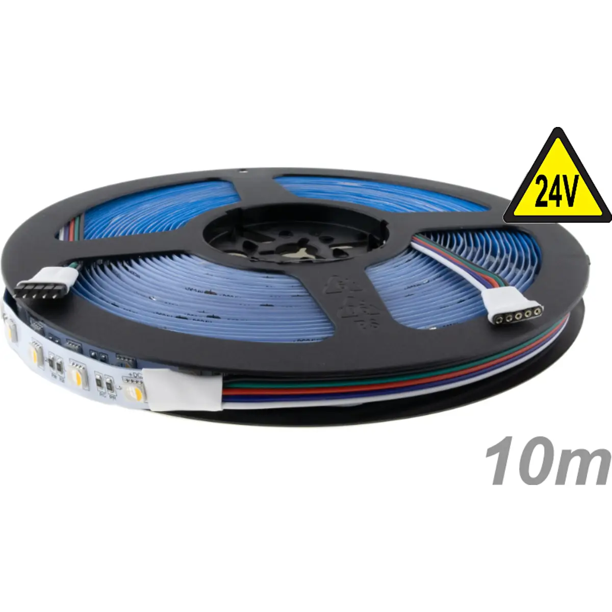 A vantagem das tiras RGBW 4 em 1 - em comparação com tiras RGBW convencionais - é que cada LED pode exibir todas as cores, incluindo branco. Não como nas tiras convencionais, onde cada LED RGB e um branco são instalados alternadamente.