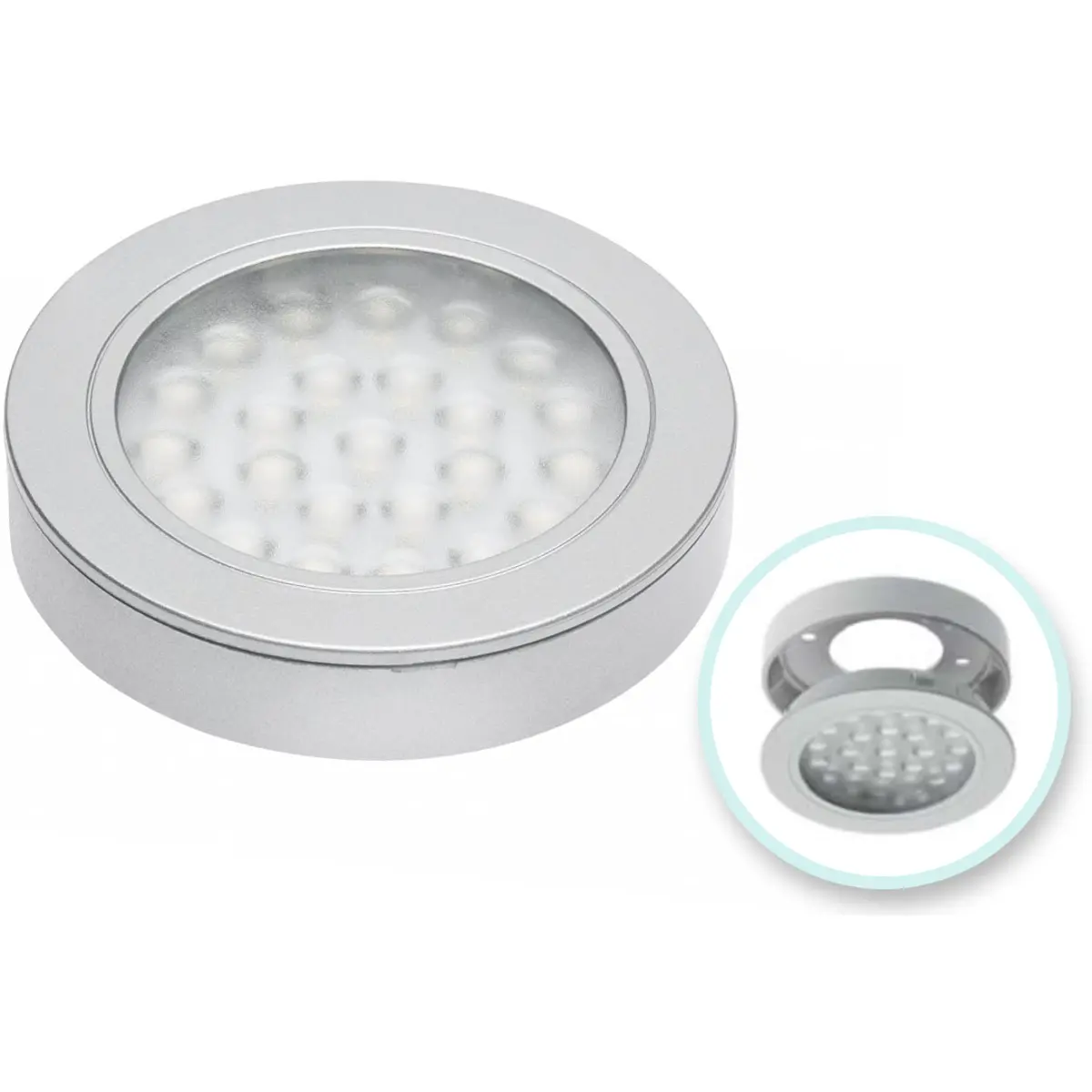 GTV Lighting - Downlight LED 12VDC 1.7W 130lm 3000K (branco quente) encastrar/superfície Ø64x12mm (Ø46) IP20 - Alumínio Mate
