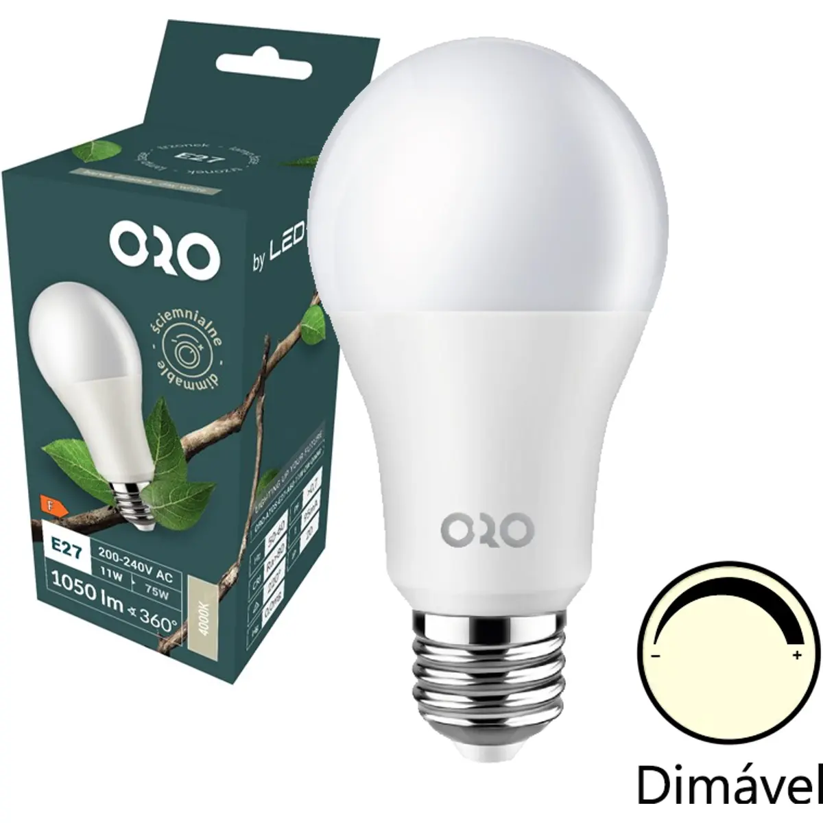 LED POL ORO-ATOS-E27-A60-11W-DW-DIMM - Lâmpada E27 LED 230V 11W 4000K (branco neutro) 1050lm - Dimável