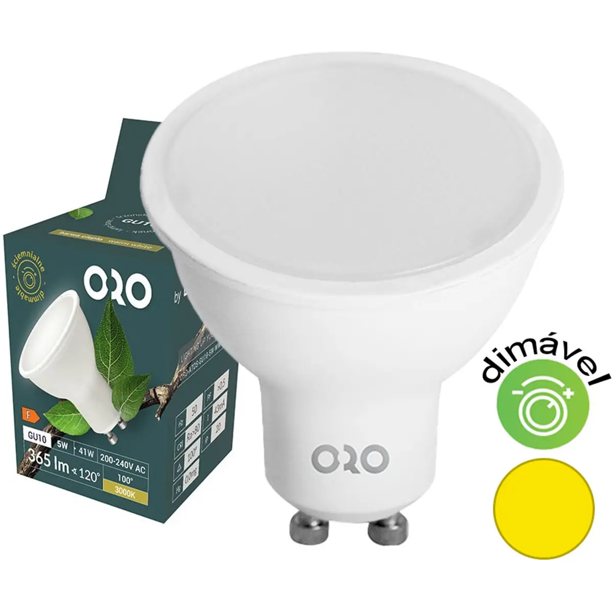 LED POL ORO-ATOS-GU10-5W-WW-DIMM - Lâmpada LED GU10 230V 5W 3000K (branco quente) 365lm