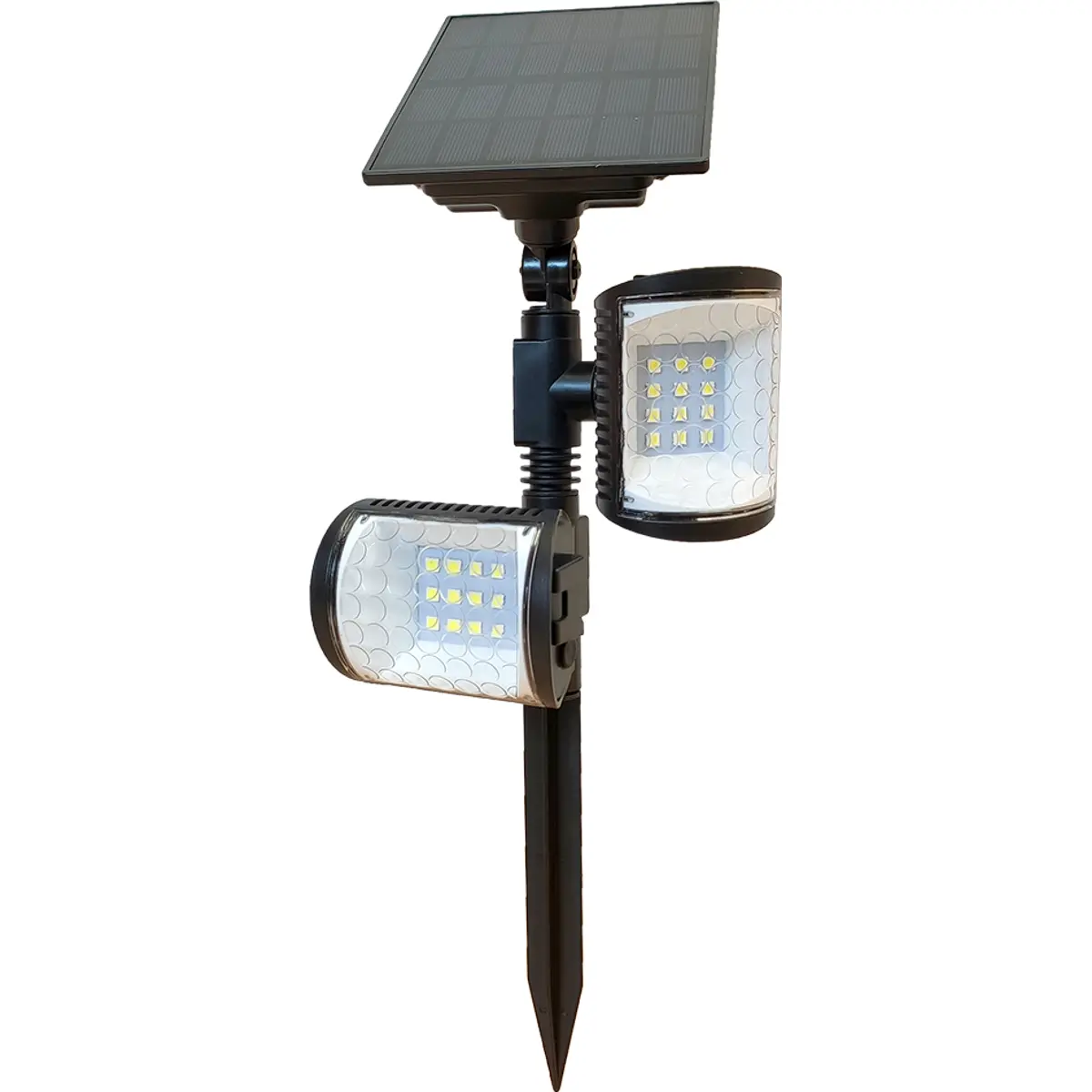 Candeeiro LED solar duplo projetor de jardim com estaca 2.2W 6500K - IP65