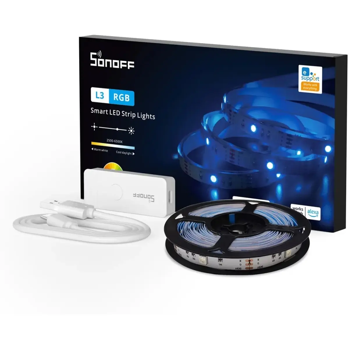 Através da aplicação eWeLink poderá escolher a cor da fita através de um simples toque. Ou pode usar o controlo de voz através do Google Home ou a Alexa para selecionar uma das 16 milhões de cores disponíveis.