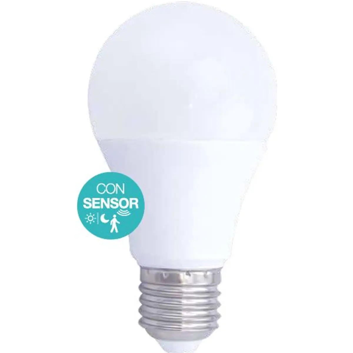 Esta lâmpada LED com casquilho E27 integra sensor crepuscular e detecção de movimento de 360°, acionando-se a 30 lux. Oferece 9W de potência, fluxo luminoso de 950 lm e temperatura de cor de 3000K, garantindo iluminação acolhedora. Compatível com 220-240 VAC, apresenta classe energética A+, CRI de 80Ra e fator de potência 0,5. O ângulo de abertura de 160° facilita a cobertura de áreas amplas, tornando-a adequada para iluminação automática de interiores e exteriores.