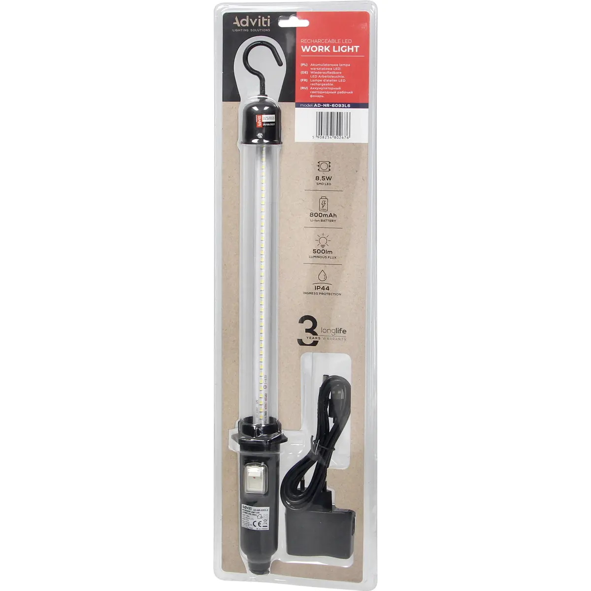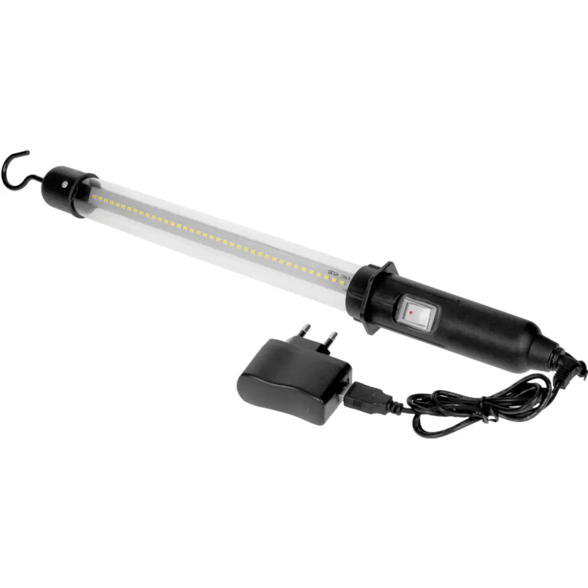 Gambiarra de oficina LED portátil com bateria de iões de lítio recarregável de 800mAh incorporada, concebido para iluminar trabalhos realizados ao ar livre, em casa, na oficina de automóveis, garagem de serviço, garagem, campismo, etc. Equipado com LEDs de última geração, um gancho que permite pendurar a lâmpada, um botão hermético e um carregador de corrente incluído.