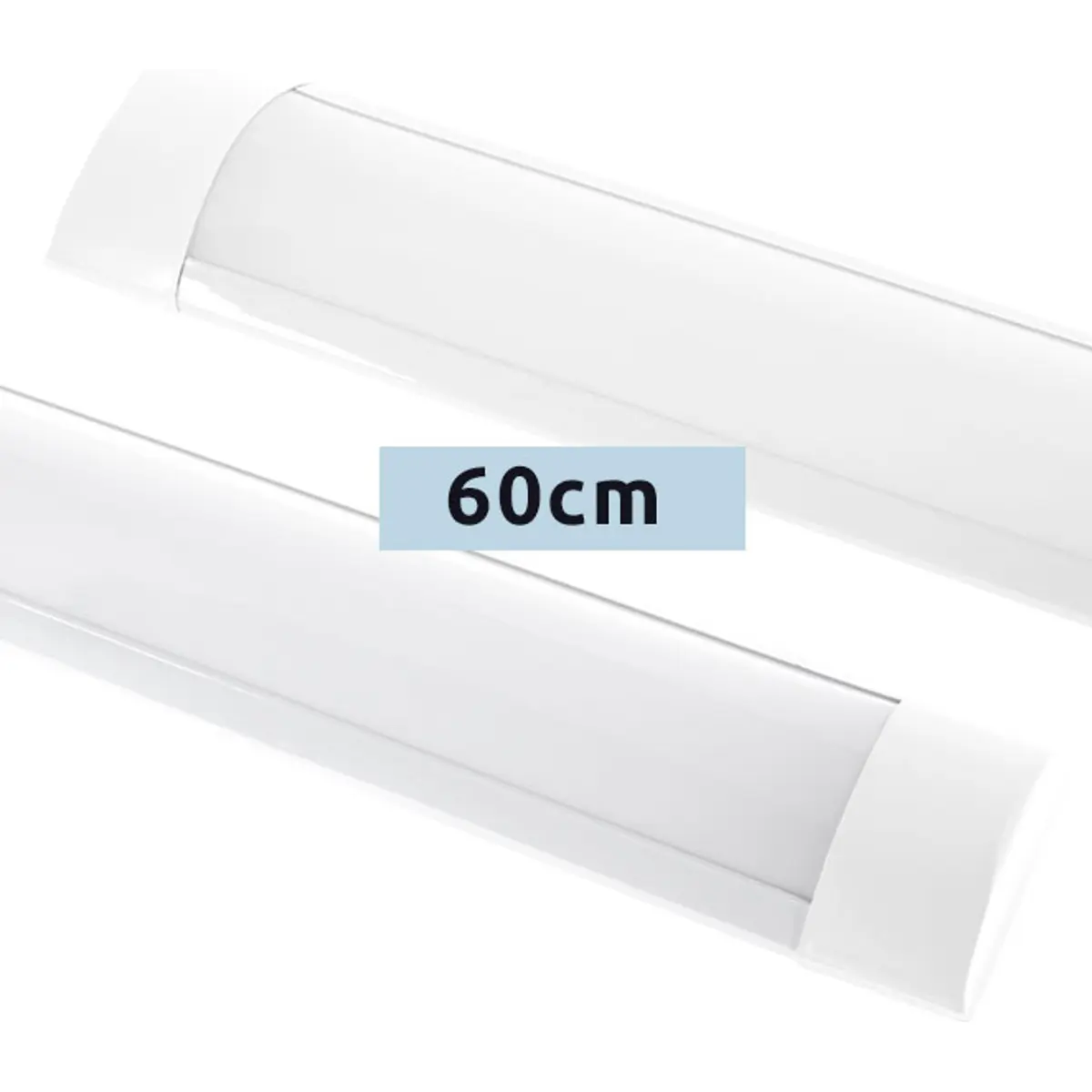 A luminária LED de superfície para interiores substitui tubos fluorescentes, oferecendo iluminação eficiente de 20 W com fluxo de 1700 lm a 4000 K. Compatível com 230 V e 50 Hz, fabricada em plástico PBT, com IP20 e CRI > 80. Dimensões 600x75x23 mm. Ideal para escritórios, cozinhas, lojas e oficinas; montagem em superfície, luz branca natural, longa vida útil e baixo consumo.