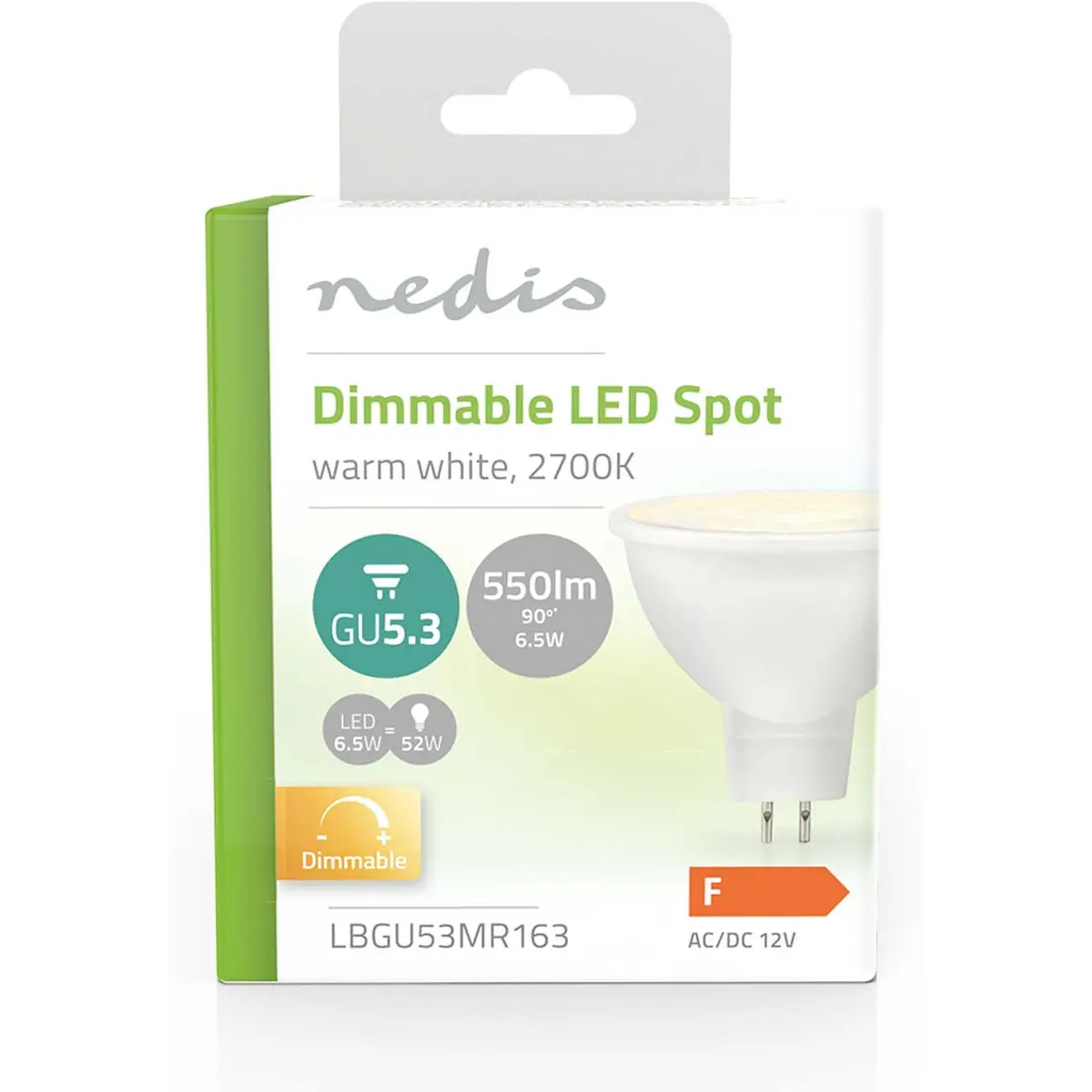 Nedis LBGU53MR163 - Lâmpada MR16 GU5.3 LED 12V 6.5W 2700K 550lm 36º dimável