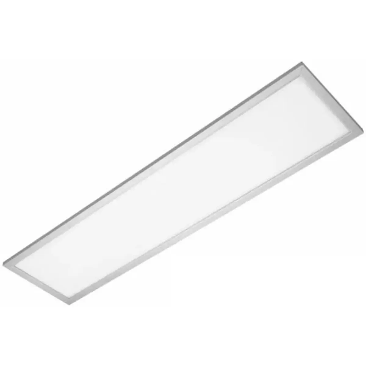 Painel LED de embutir com driver incluído, potência de 40W e fluxo luminoso de 3800 lúmenes, iluminação a 6000K (branco frio). Dimensões 1200x300x38 mm, formato retangular, fabricado em alumínio com moldura também em alumínio. Oferece classificação IP20 e IK05 para resistência básica a poeira e impactos em interiores. Adequado para iluminação interior discreta em espaços comerciais e residenciais, proporcionando iluminação estável, eficiente e de qualidade ao longo do dia.
