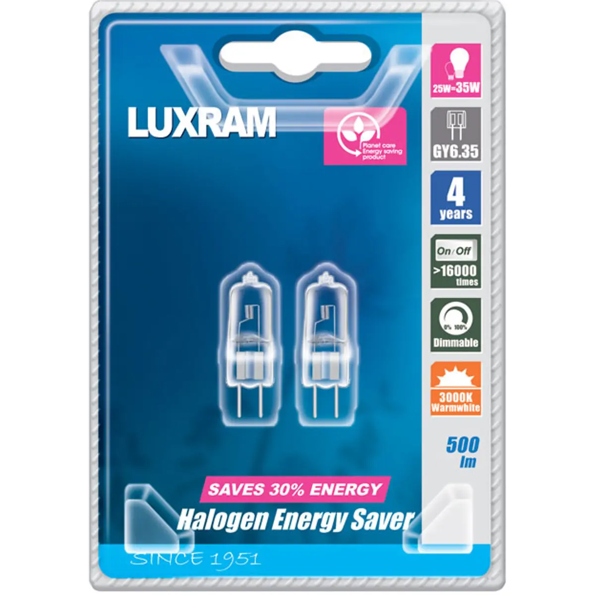 - Potência equivalente: 50=35W