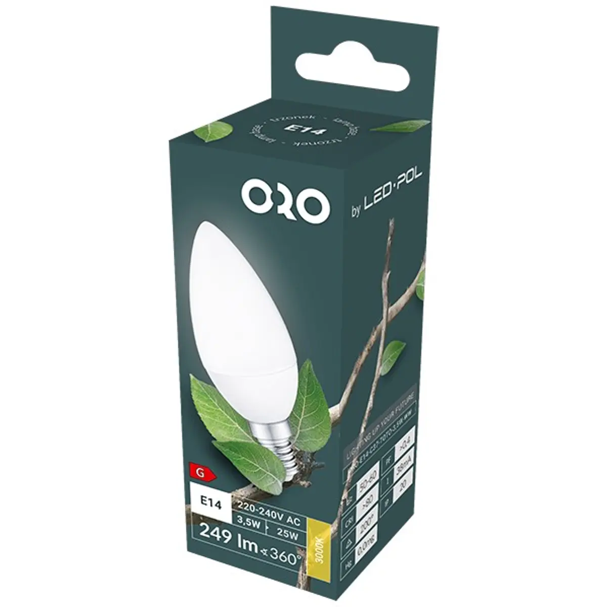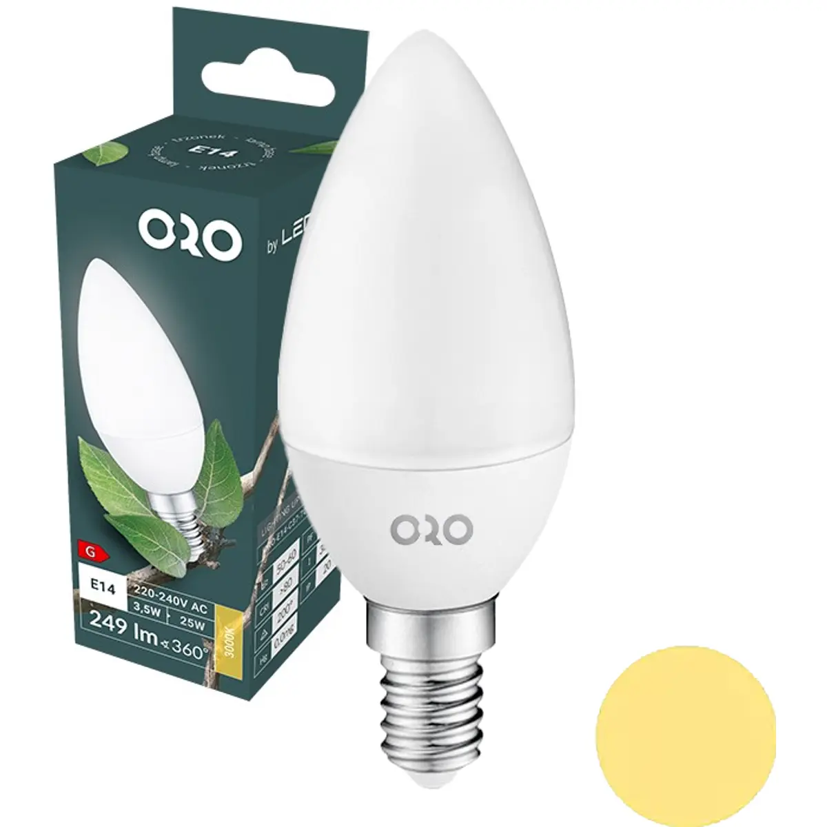 LED POL ORO-E14-C37-TOTO-3,5W-WW - Lâmpada LED E14 C37 230V 3.5W 3000K (branco quente) 249lm