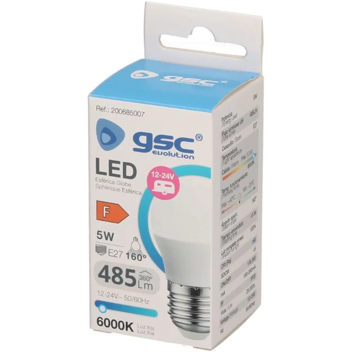 GSC Evolution - Lâmpada LED E27 G45 12..24V 5W 6000K (branco frio) 485lm