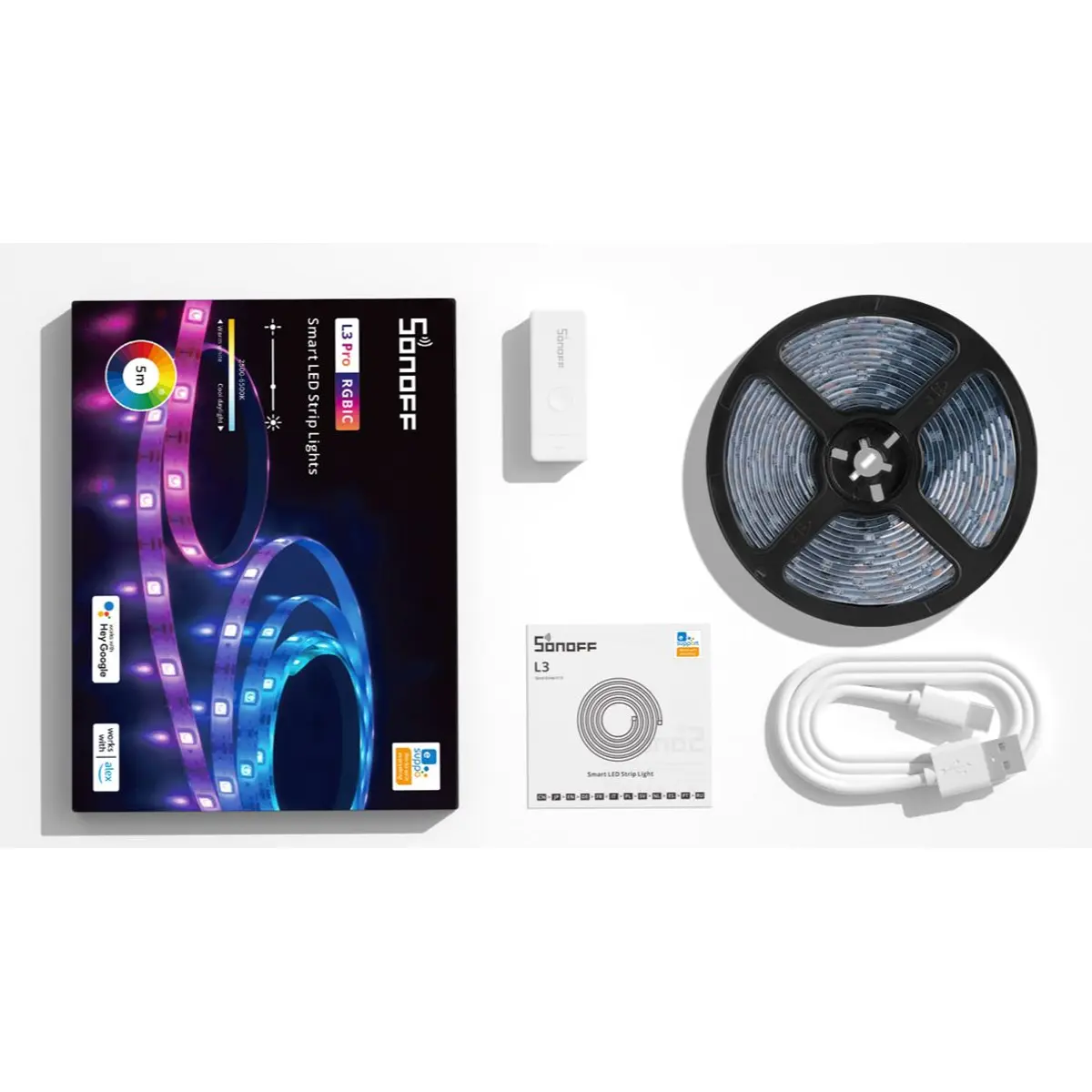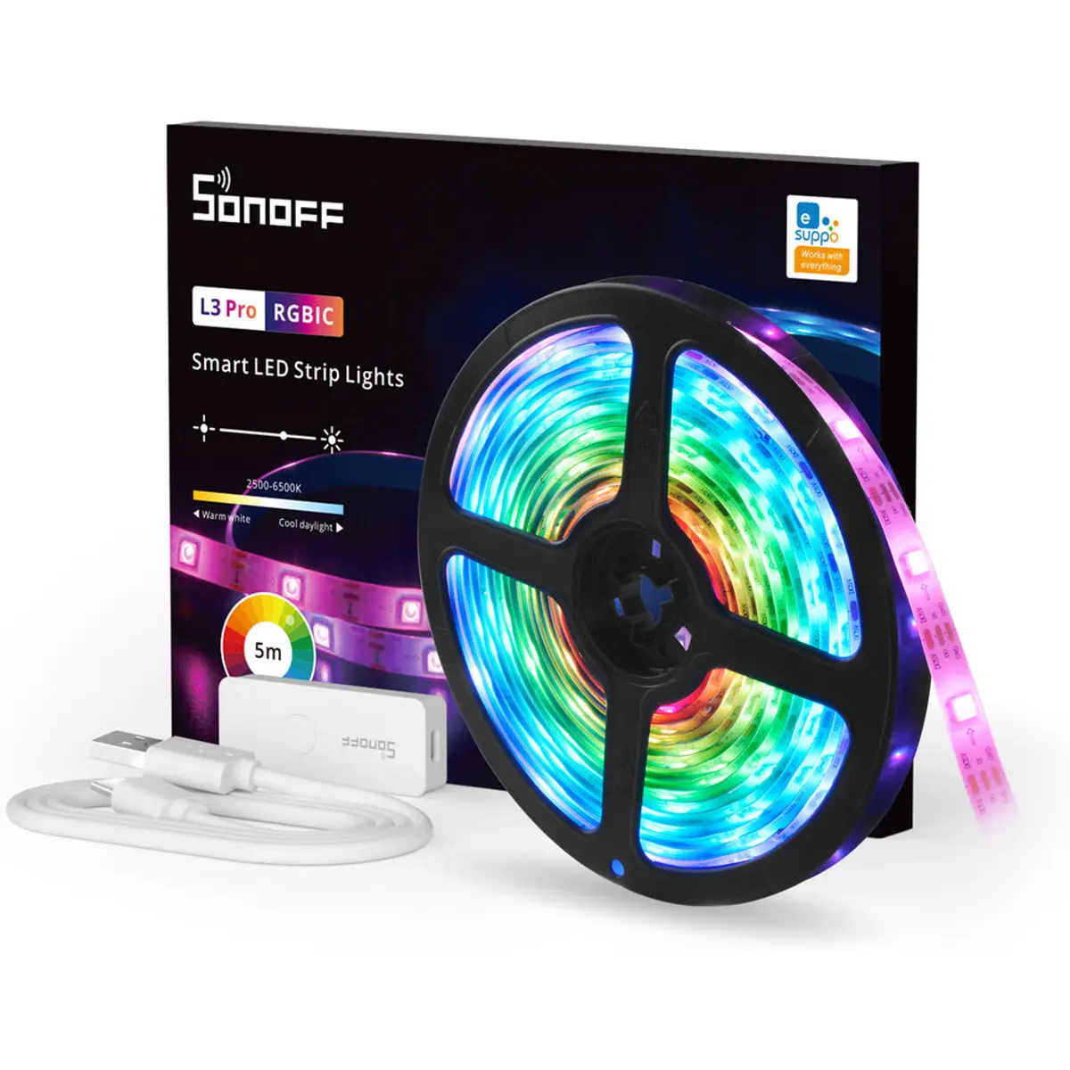 Sonoff L3 Pro - L3-5M-P - Fita de 150 LEDs RGBIC inteligente Wi-Fi 5VDC (USB-C) IP54 - 5.0m