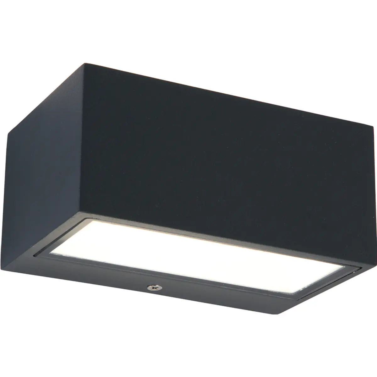 O aplique LED exterior GEMINI em preto mate tem um design minimalista mas um fluxo luminoso de 700lumens. Esta elegante luz em forma de bloco de alumínio ilumina em duas direções.