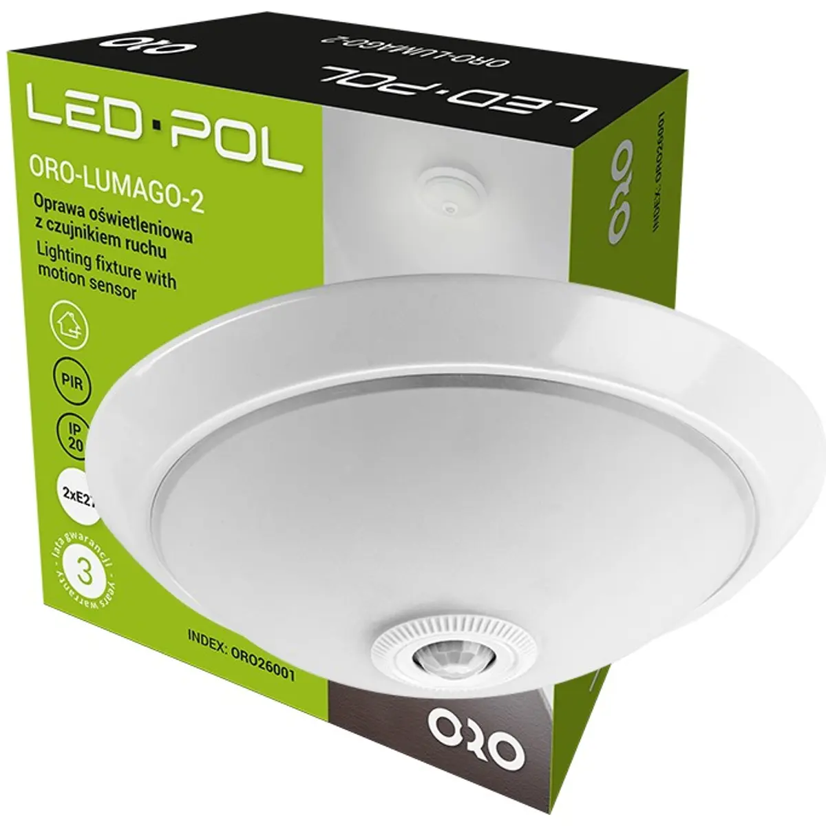 LED POL ORO-LUMAGO-2 - Plafon 230VAC (2x E27) c/ sensor PIR 360º - Ø310x95mm