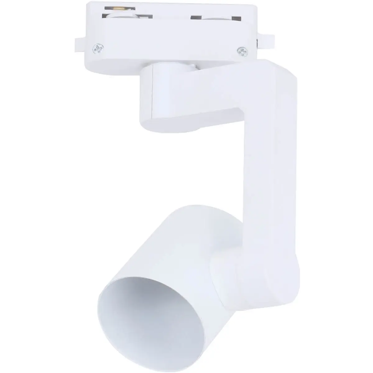 O projetor de trilho monofásico com casquilho GU10 oferece iluminação direcional ajustável. Compatível com lâmpadas LED e adequado para lâmpadas dicróicas, suporta até 20W e funciona em 220-240V AC. O corpo em ABS+PC na cor branca assegura durabilidade, sem lâmpada incluída. A cabeça orientável permite direcionar a luz para zonas específicas, ideal para iluminação de tetos, corredores, vitrines ou áreas de trabalho, com uma estética moderna.
