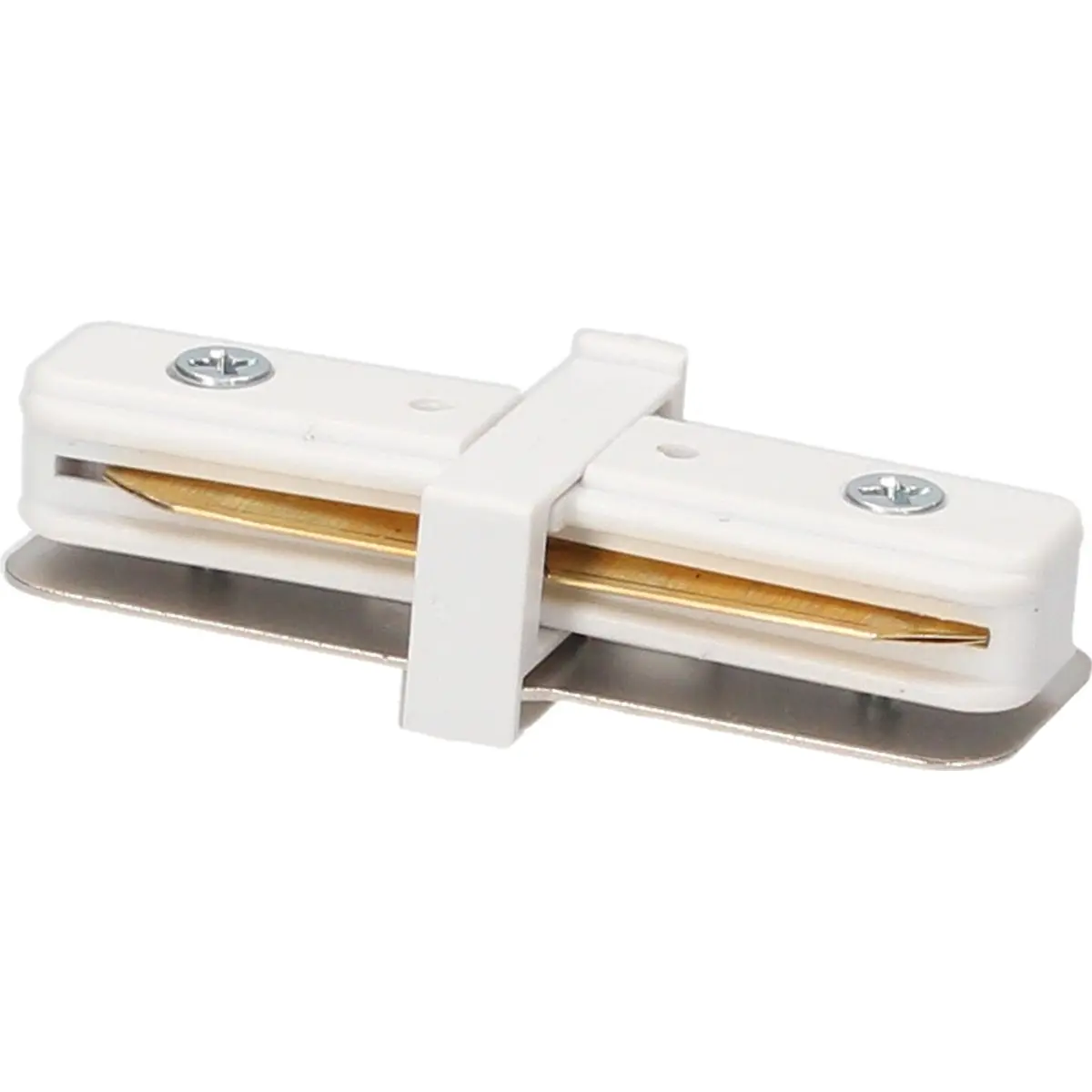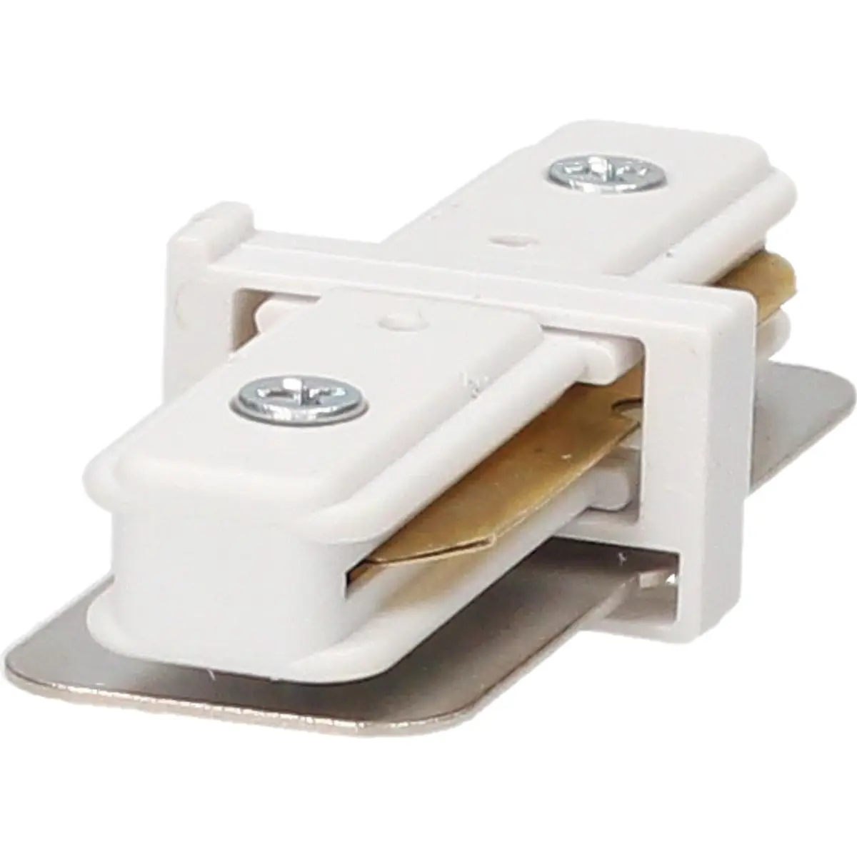 União de calha Track Light (1 via) para projectores monofásicos, na cor branca. Compatível com rede eléctrica de 220..240V AC 50/60Hz e construída em ABS + Ferro, com classificação IP20. Ideal para instalação interna, oferecendo montagem simples e fiabilidade para soluções de iluminação com via única, adequada a corredores, galerias e espaços técnicos, proporcionando um acabamento discreto e versátil em ambientes onde é necessária iluminação direcionada.