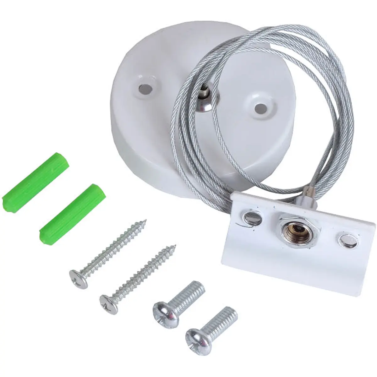 Kit de suspensão para calha Track Light monofásicos, na cor branca, em ferro resistente com proteção IP20. O cabo de 1.5m facilita a instalação mantendo a fiação afastada. Ideal para suspensão de luminárias em calhas, oferecendo montagem estável e acabamento discreto que combina com ambientes modernos, comerciais ou residenciais. Compatível com sistemas Track Light monofásicos, assegura durabilidade, segurança e uma estética limpa.