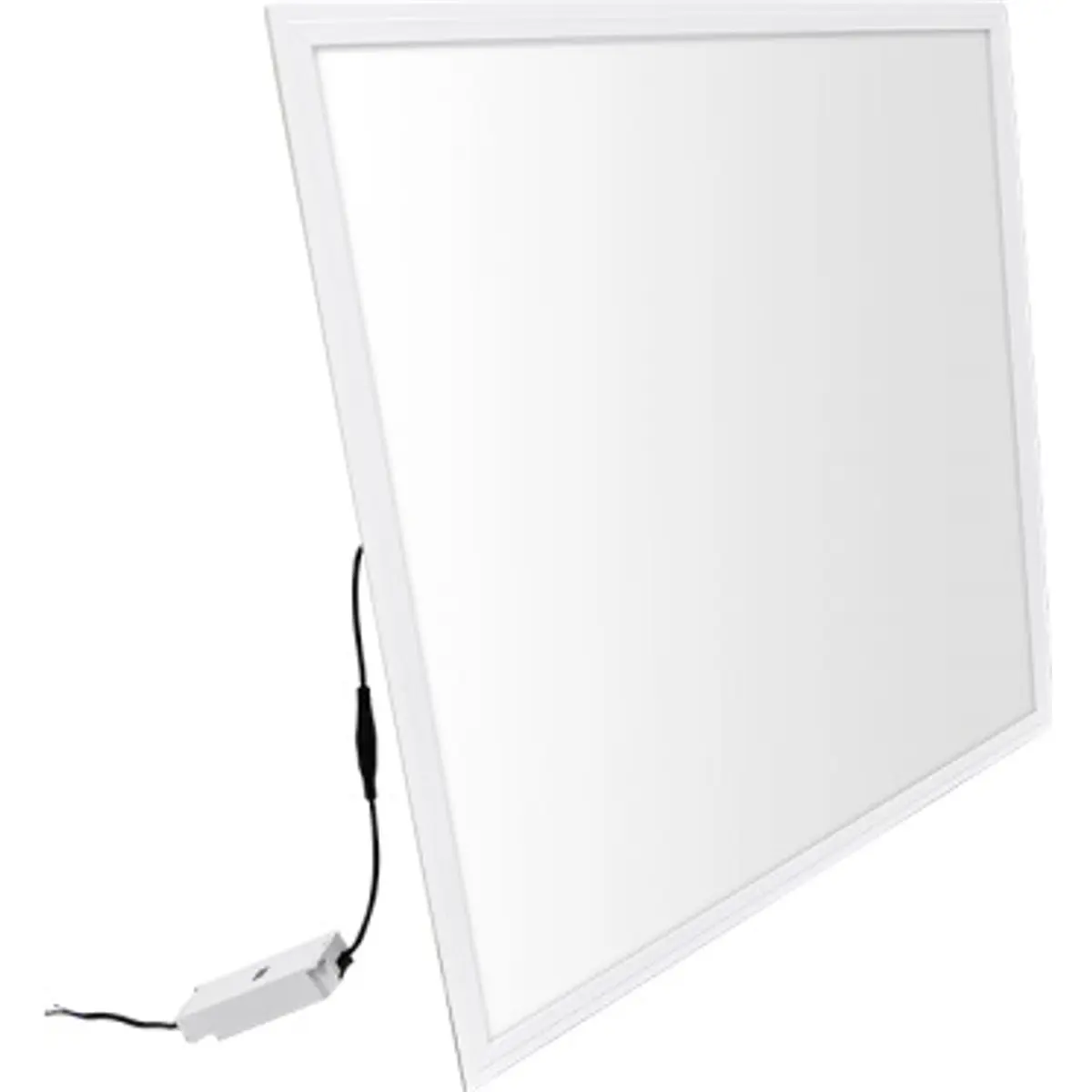 Painel LED quadrado de superfície/encastrável para interior, com 230V, 60W e 6300lm, oferece iluminação de 4000K neutro. Possui CRI >82Ra, eficiência de 105lm/W e ângulo de abertura de 110° para distribuição uniforme. IP20 para uso interior, funciona entre -20°C e 45°C e tem dimensões de 595x595x32 mm. Pode ser encaixado em teto falso ou instalado em superfície com o acessório 306-3624; o driver não cabe.