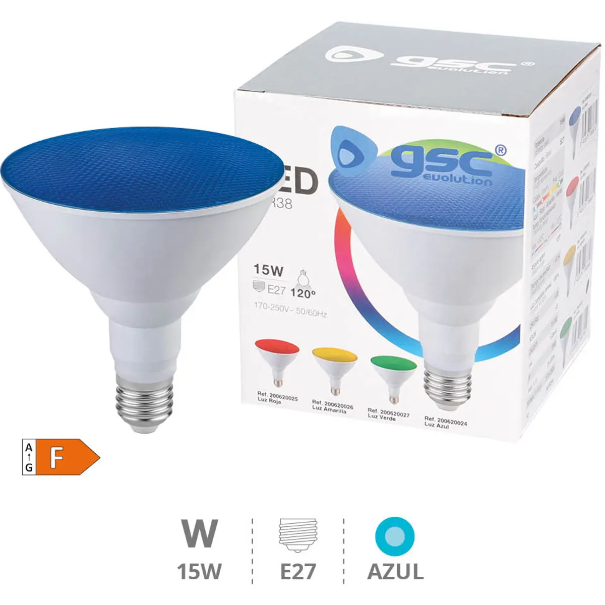 Lâmpada LED E27 PAR38 15W Azul IP65