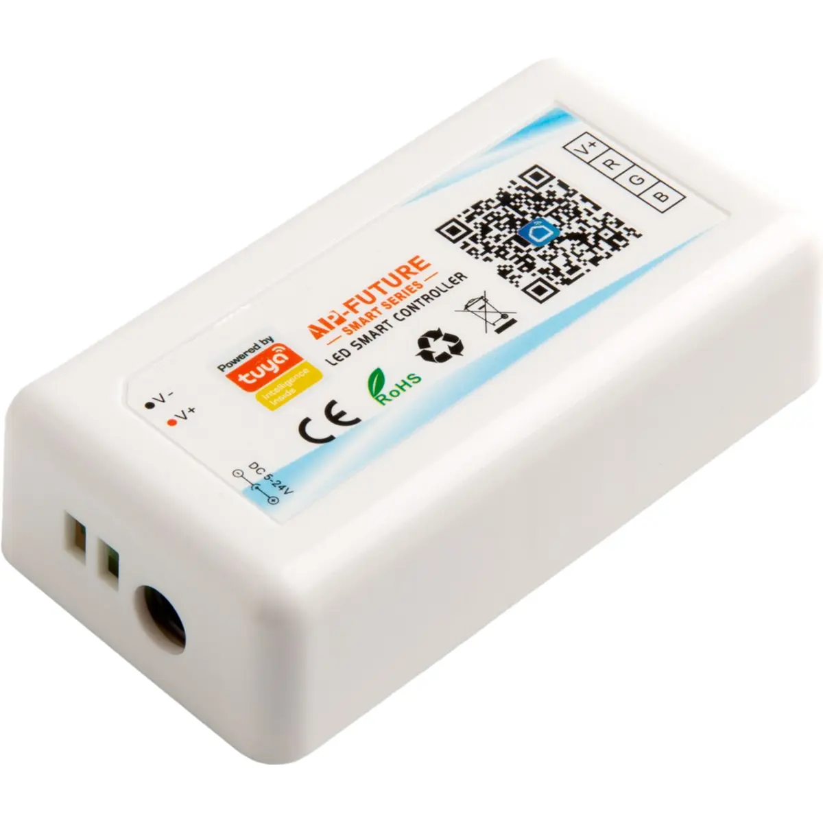 Um controlador sem fio RGB (fita LED multicor) controlado por smartphone para kits de iluminação LED multicor, até 360W de potência total da fita, alimentado por 24 V CC. Ao trabalhar com o popular Google Assistant, Alexa e Tuya, é a solução de controle de iluminação doméstica inteligente ideal.