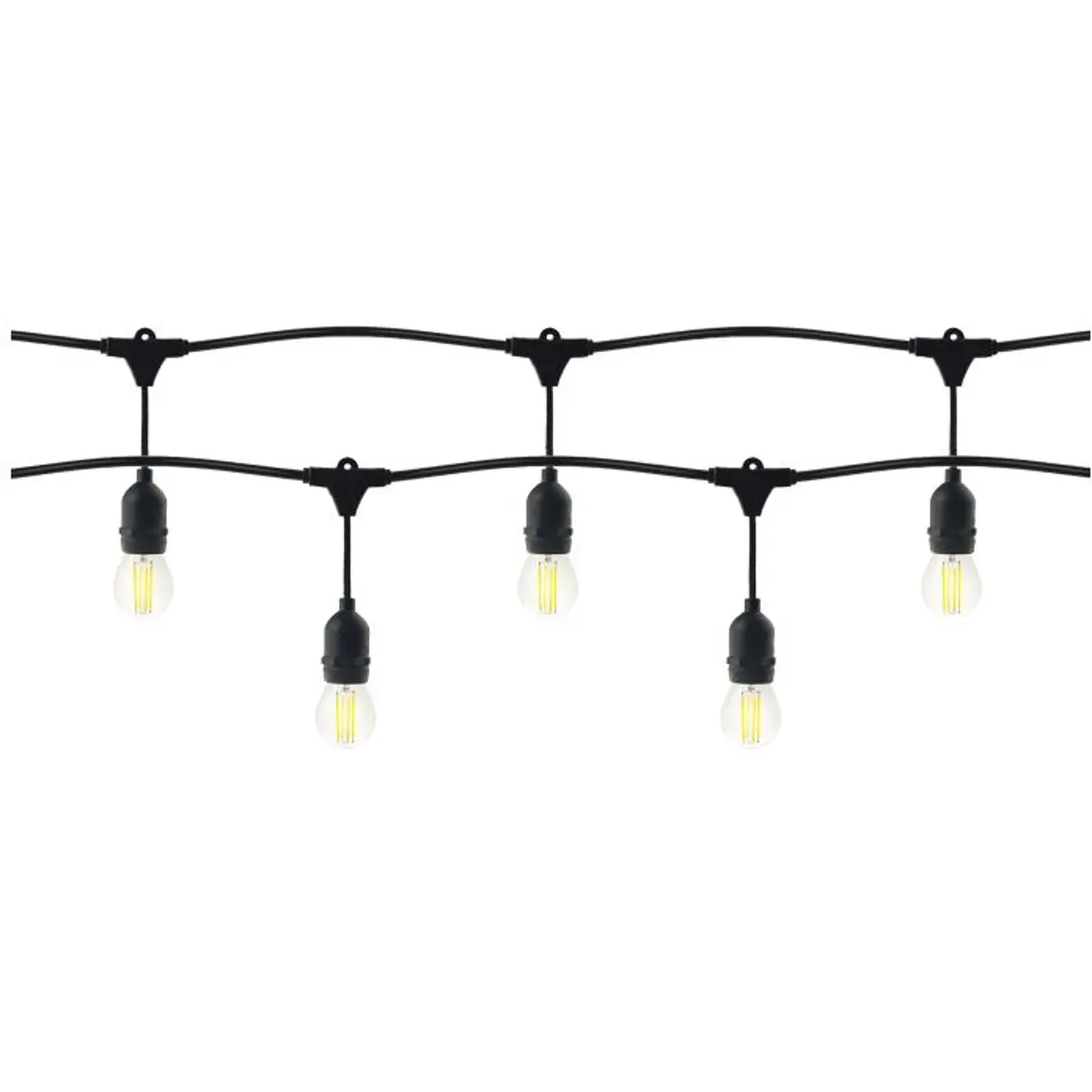 Conjunto Grinalda de iluminação 5m de comprimento, IP44, preto + 5 lâmpadas LED 1W E27, 3000K + 1 lâmpada grátis