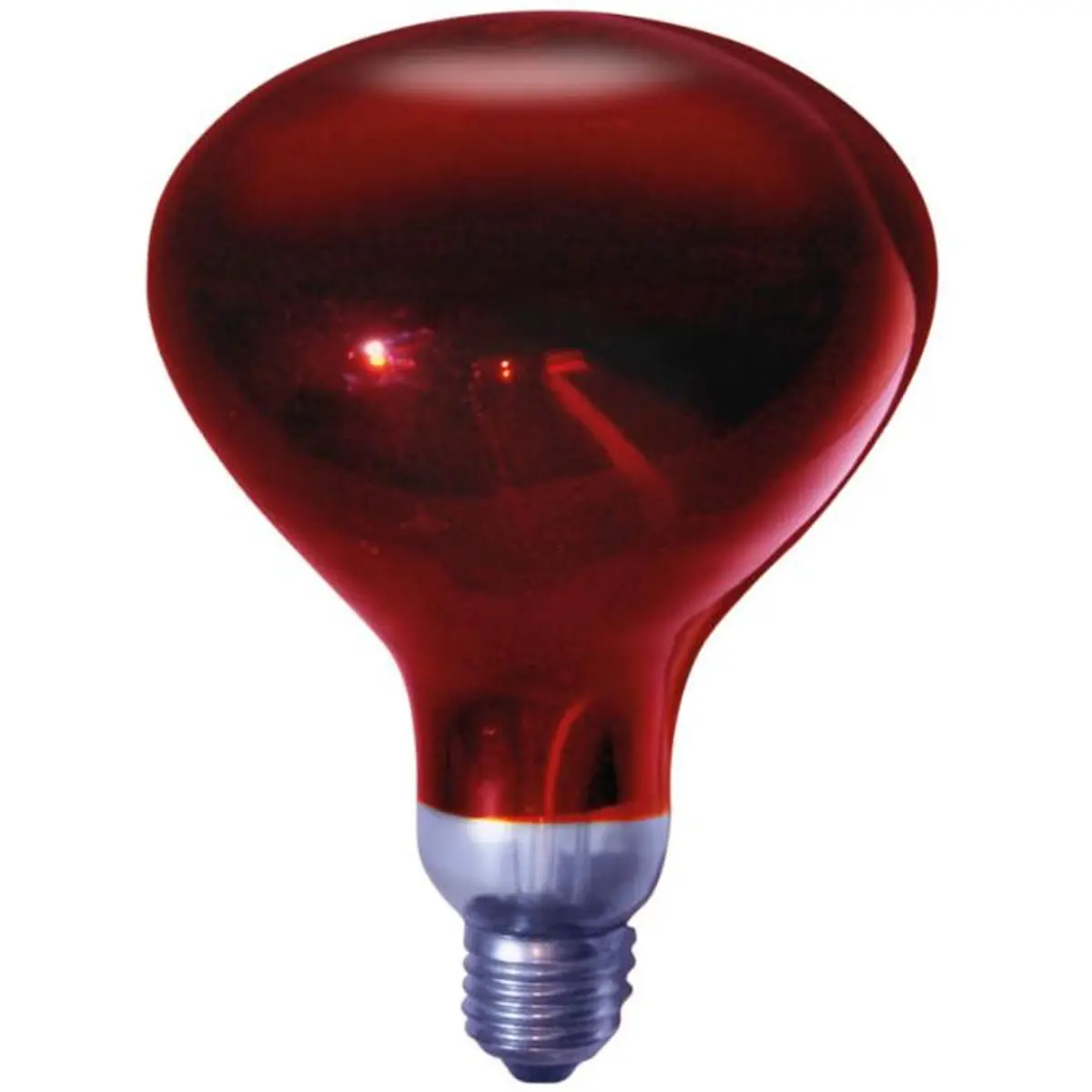 Lâmpada de infravermelhos com soquete E27, a funcionar entre 220-240V e 250W, com vida útil de 5000h. Ideal para estufas e incubadoras, para manter a comida quente em expositores, para a secagem de pinturas e para o alívio de dores musculares. Dimensões Ø115x160 mm.