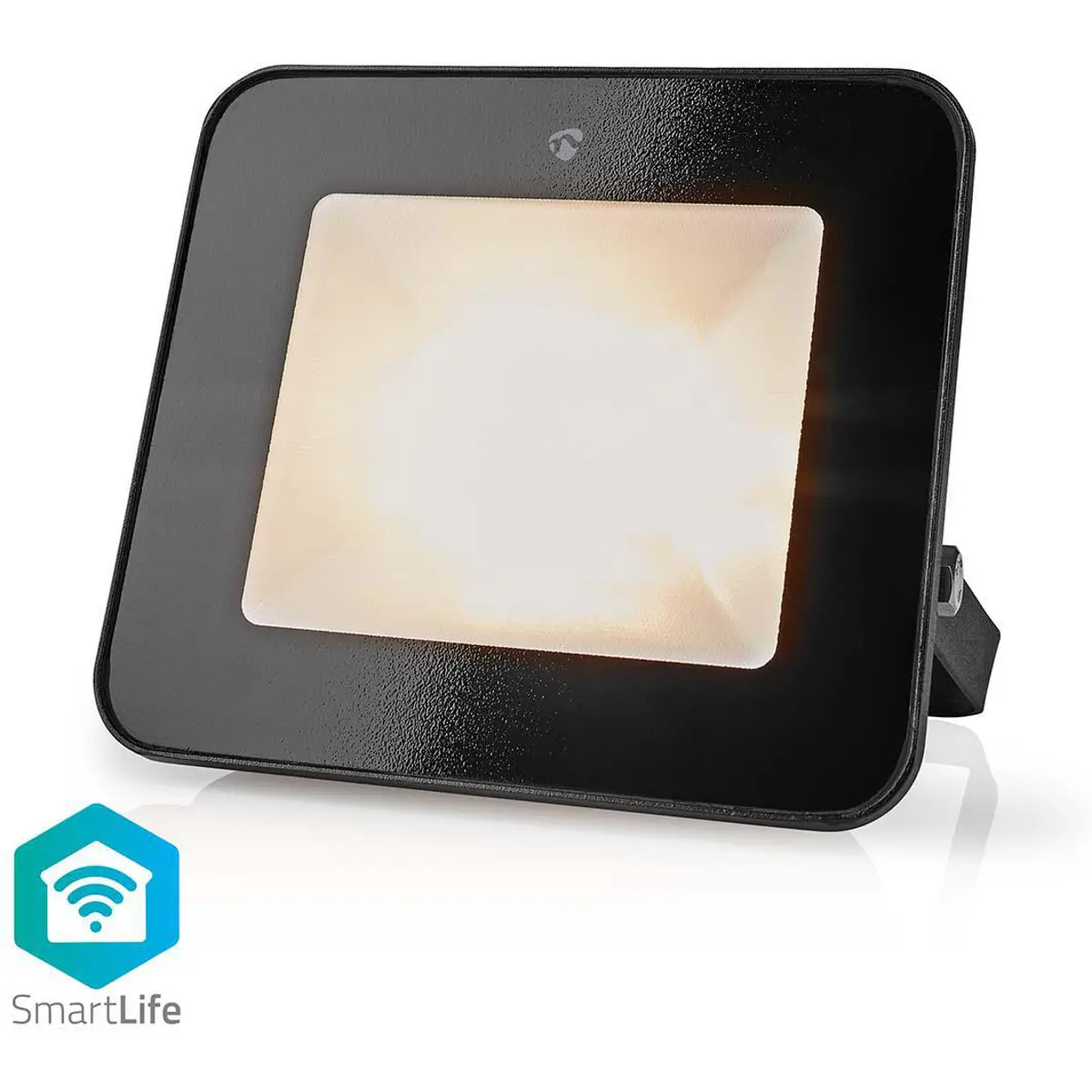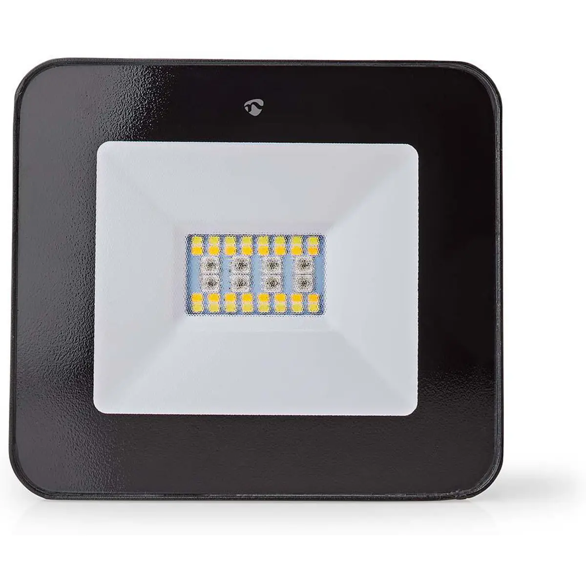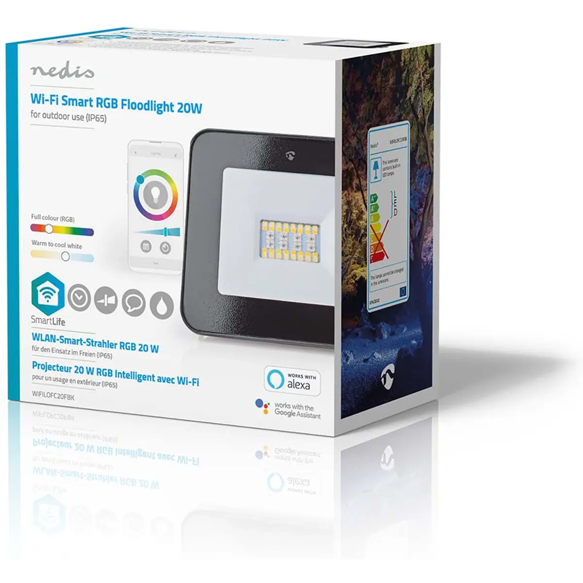 Projetor LED para exterior Wi-Fi (20 watts), de montagem na parede, possui uma saída de luz de 1600 lumens, tornando-o ideal para iluminar áreas de acesso, caminhos de entrada ou estacionamentos cobertos. Graças à sua certificação IP65, este foco é adequado para qualquer tipo de clima e pode ser utilizado em temperaturas que variam entre -20 e 40 °C. Sua prática base de montagem facilita a colocação no ângulo correto.