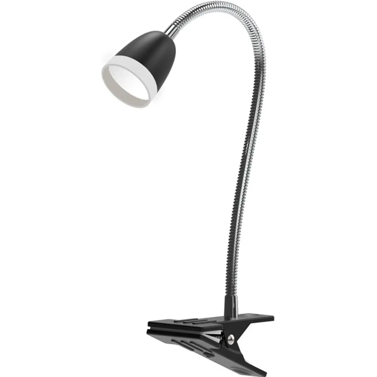 Candeeiro de mesa LED com clip, de 3W e temperatura de cor de 3000K (branco quente), fornece até 240 lm num ângulo de abertura de 120 graus. Alimenta-se a 220-240V AC com 50 Hz e tem cabo de 1,8 m, em acabamento preto. Ideal para leitura, estudo e trabalhos próximos, oferecendo iluminação estável e eficiente sem ocupar muito espaço.