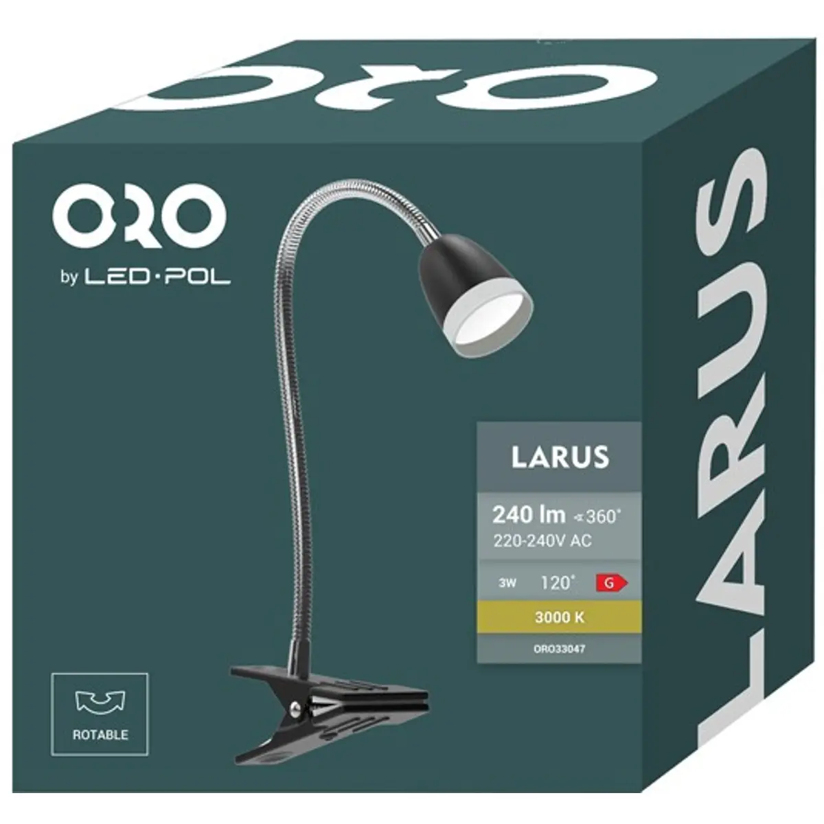 LED POL ORO LARUS CL LED B - Candeeiro de mesa LED c/ clip 3W 3000K - Preto