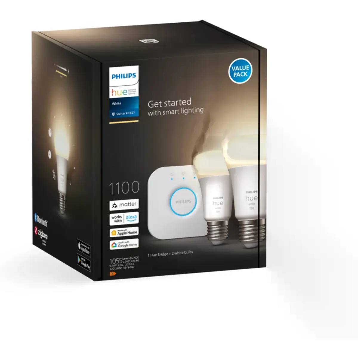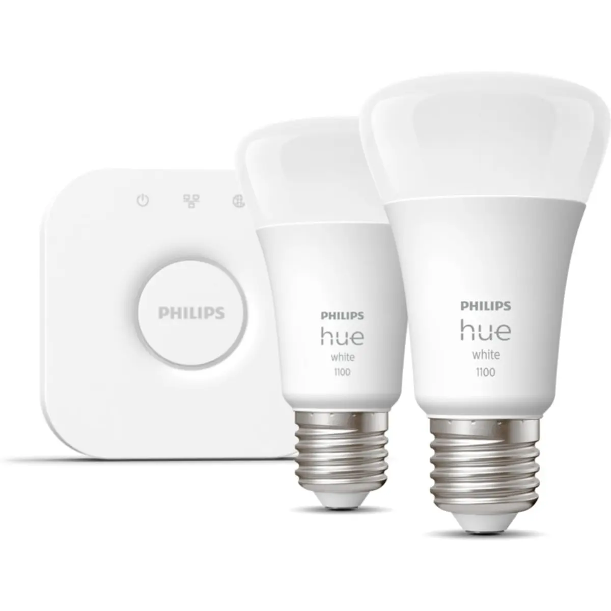 Obtenha o seu sistema de iluminação inteligente com este Kit inicial, que inclui duas lâmpadas inteligentes de luz branca suave e uma Hue Bridge. Um kit completo para controlo personalizado da iluminação doméstica e todas as suas incríveis funcionalidades.