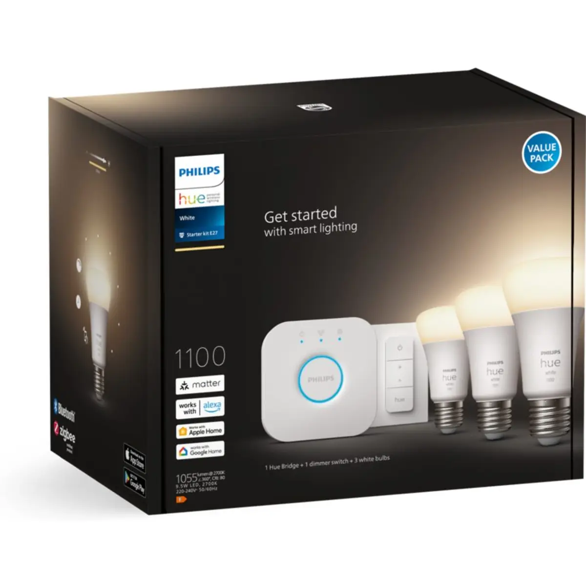 Obtenha o seu sistema de iluminação inteligente com este Kit inicial, que inclui 3 lâmpadas inteligentes de luz branca suave, uma Hue Bridge e um interruptor capaz de regular a intensidade da luz e escolher uma das cenas predefinidas. Um kit completo para controlo personalizado da iluminação doméstica e todas as suas incríveis funcionalidades.