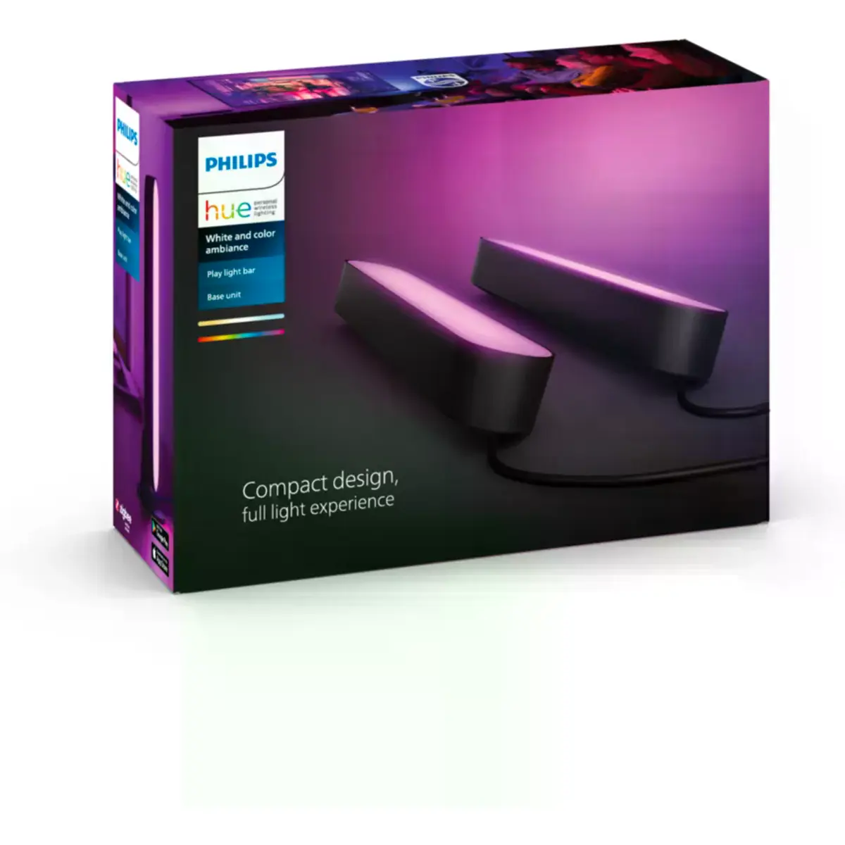 Crie um efeito de iluminação inteligente e colorido com o design elegante da barra de luz Play em preto. É fornecida numa embalagem com 2 barras de luz Play e uma fonte de alimentação que permite ligar até três luzes. Pode ser instalada na vertical, na horizontal ou atrás da sua TV com os suportes incluídos.