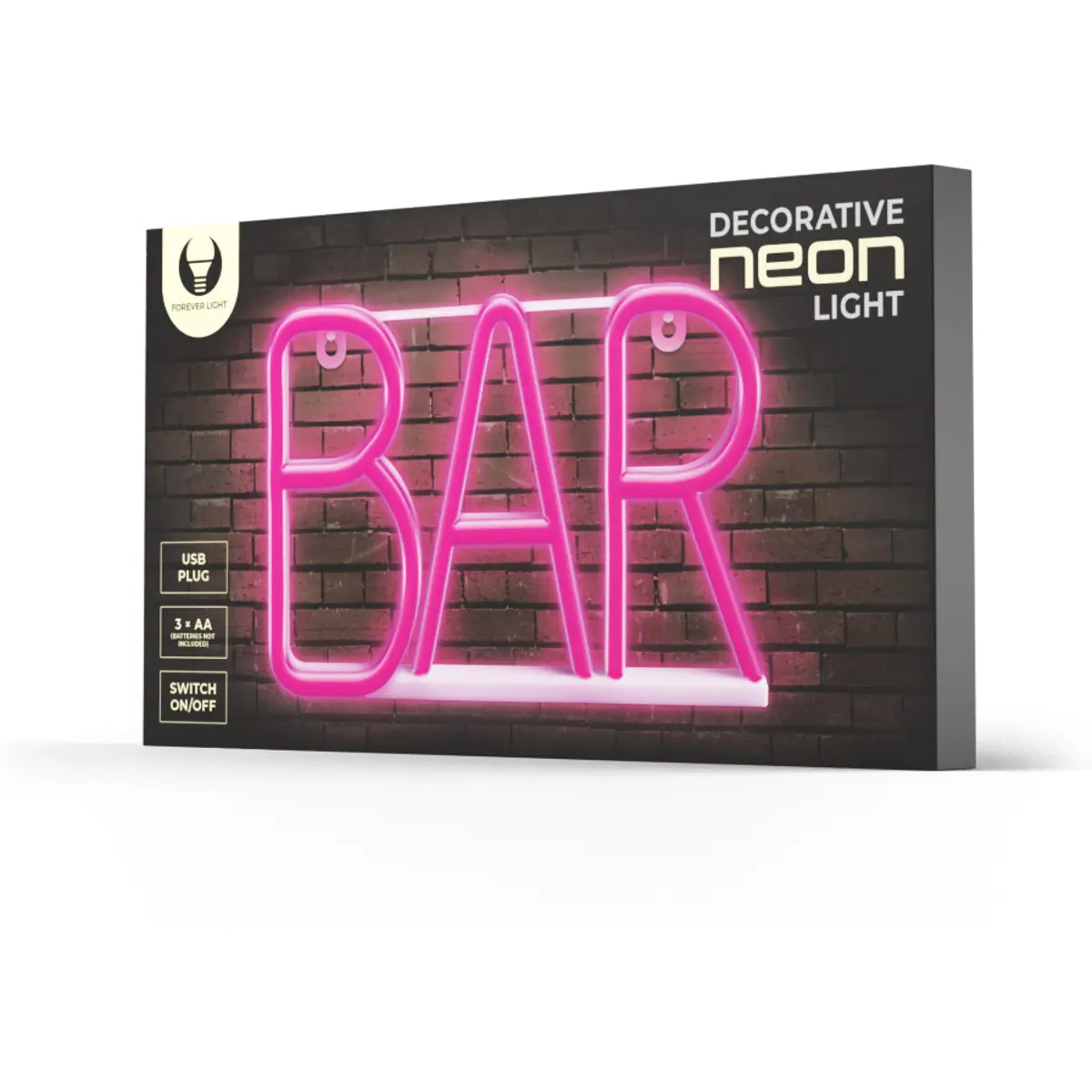 Forever - Neon LED decorativo ''BAR'' (USB / 3xAA) Rosa - 185x190mm