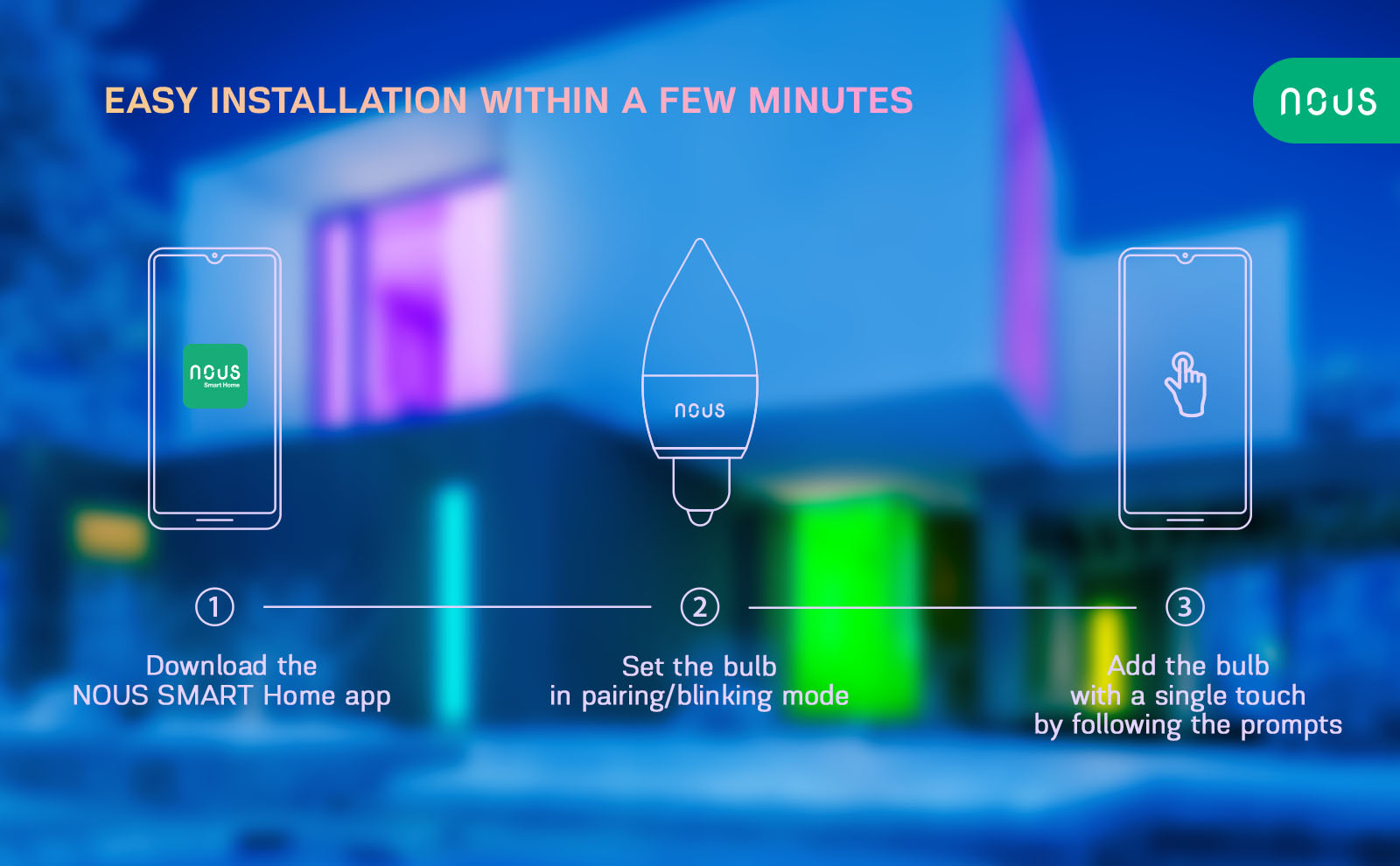 Mude o seu estado de espírito com um simples toque, alterando a iluminação da sua divisão. Independentemente do que estiver a fazer, a lâmpada inteligente Nous P4 ajudá-lo-á a alterar instantaneamente a iluminação da sua divisão e poderá fazê-lo a partir de qualquer lugar.
