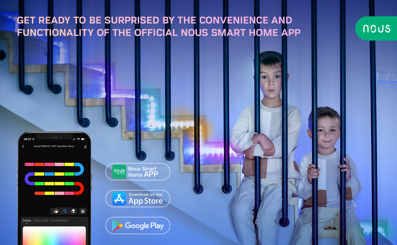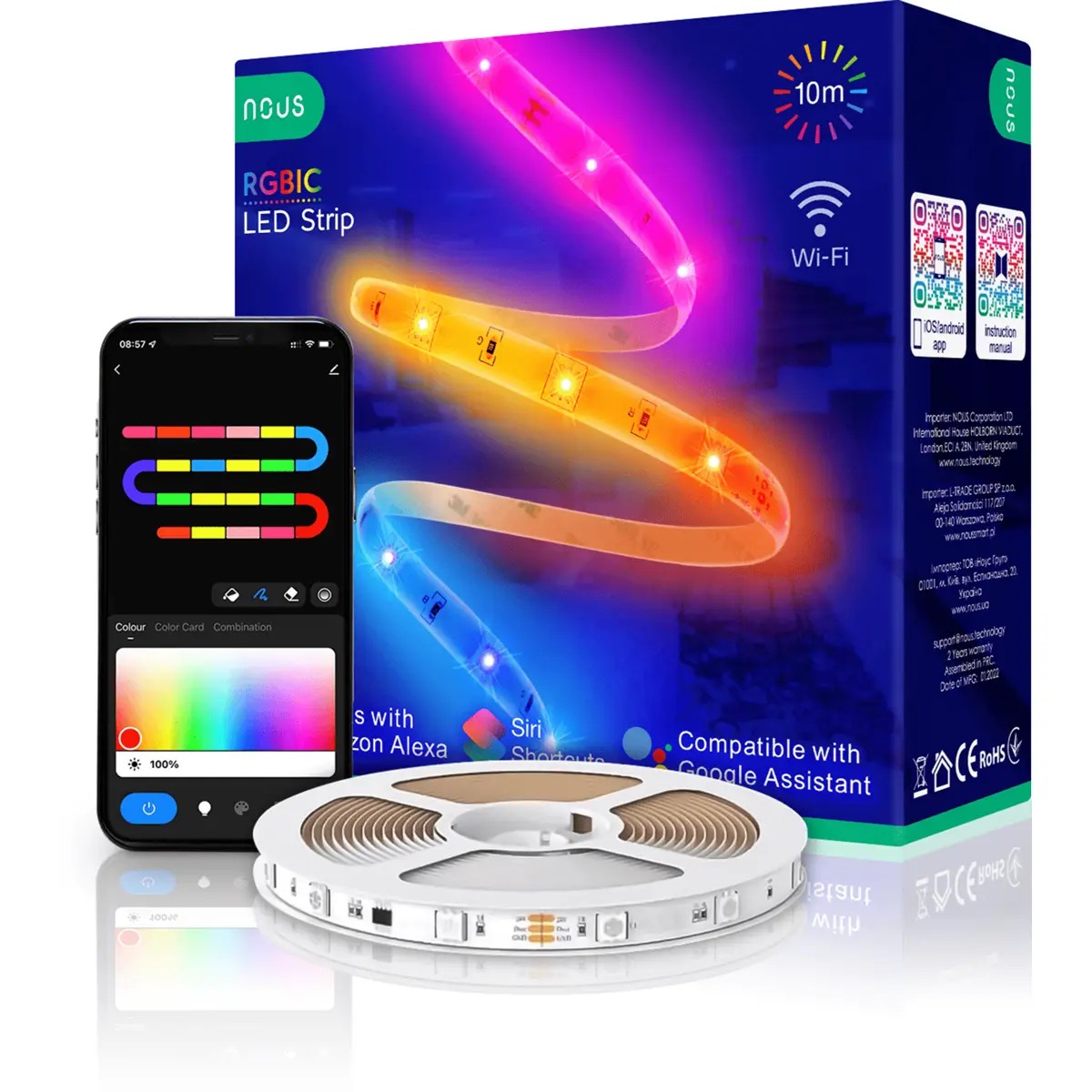 A Nous F5 (Smart 10m RGB+IC WiFi Led Strip) é uma fita de iluminação inteligente com LEDs RGB+IC, fácil de instalar e utilizar, que pode ser adaptada a qualquer espaço e superfície.