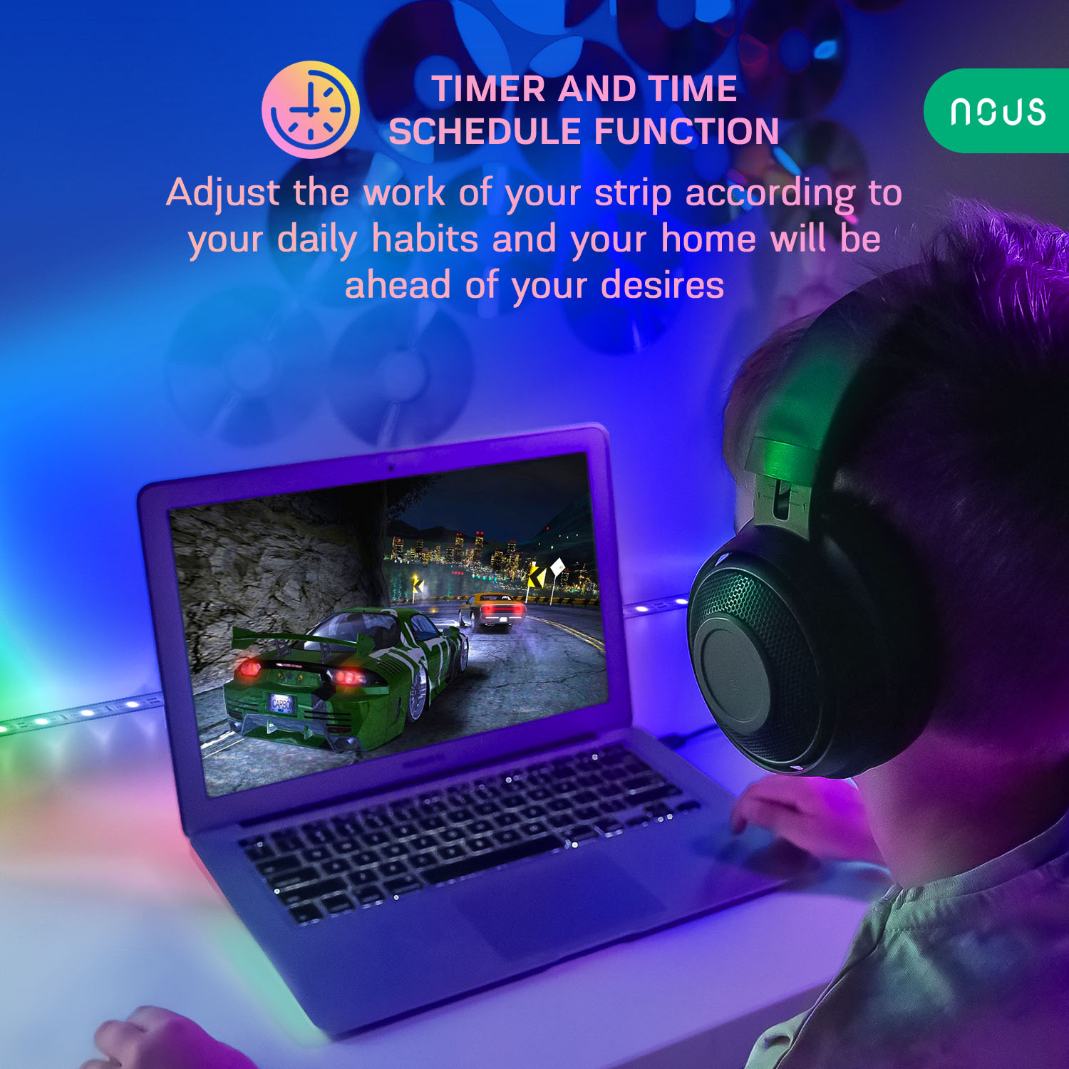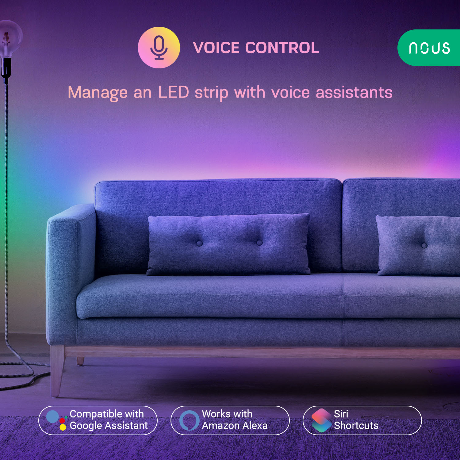 Pode controlá-la com o seu smartphone utilizando a aplicação Nous Smart ou a aplicação Tuya Smart Life, ou com a sua voz utilizando Alexa ou Google Assistant. Também pode sincronizá-la com a sua música e utilizar a faixa de luz em festas, feriados, eventos ou ocasiões especiais para impressionar os seus convidados com cores e efeitos deslumbrantes.
