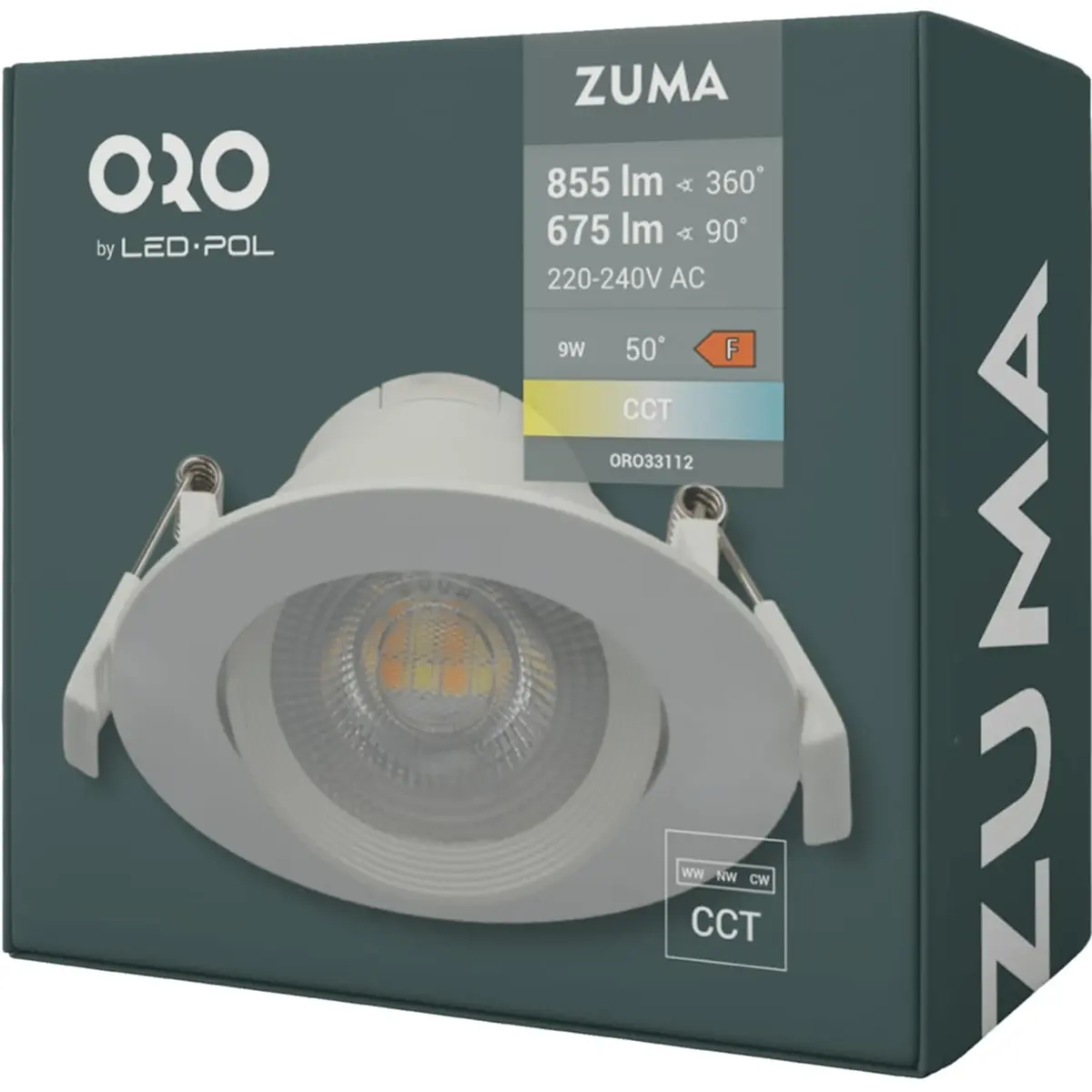 LED POL ORO-ZUMA-LED-R-9W-CCT-W - Projetor LED 230VAC 9W 855lm CCT (3000/4500/6500K) orientável Ø110x42mm - branco