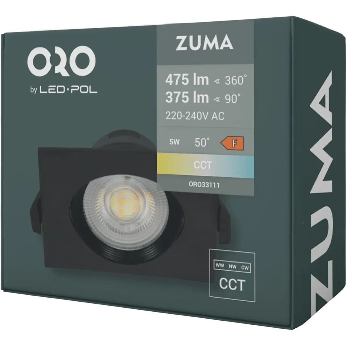 LED POL ORO-ZUMA-LED-S-5W-CCT-B - Projetor LED quadrado 230VAC 5W 855lm CCT (3000/4500/6500K) orientável - preto - 85x85x38mm