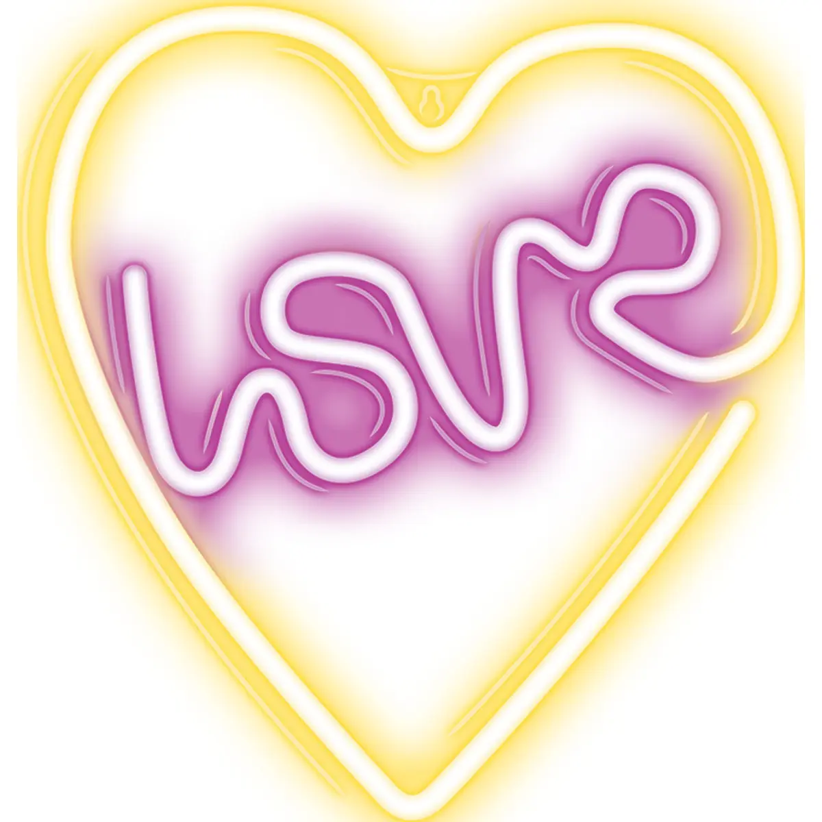 O Neon LED decorativo Love oferece um brilho colorido com difusão uniforme, sem pontos luminosos, ideal para criar atmosfera em restaurantes, bares e espaços de convívio. Pode ser alimentado por USB ou por 3 pilhas AA, com interruptor ON/OFF para conveniência. Fabricado em PS e PVC, em tom amarelo e rosa, é leve, compacto e de baixo consumo energético, adequado para ser pendurado em superfícies verticais.