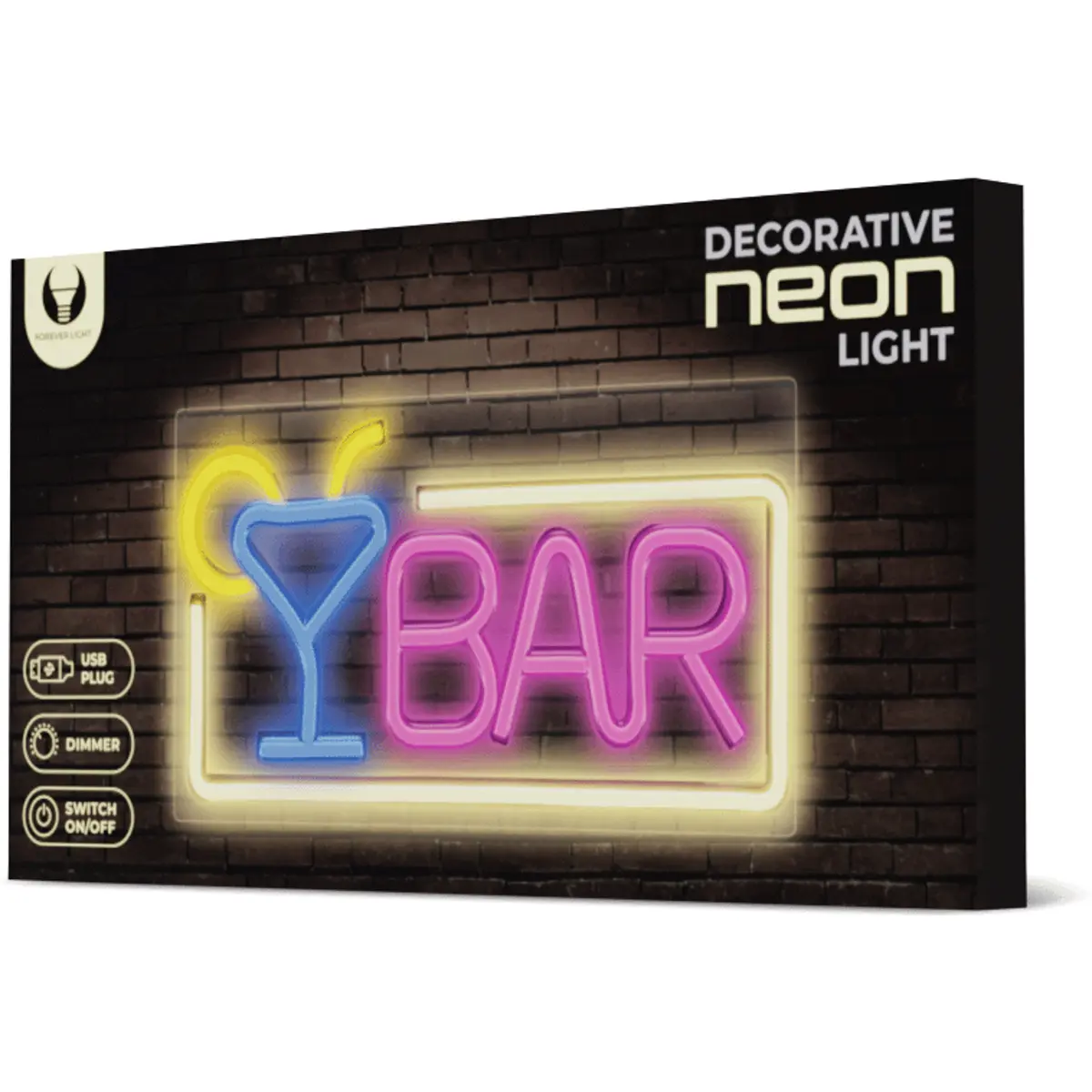Graças à tecnologia LED, as luzes de Neon consomem quantidades relativamente baixas de eletricidade. O dispositivo é alimentado através da ficha USB 5V e inclui Interruptor ON/OFF/Dimmer.
