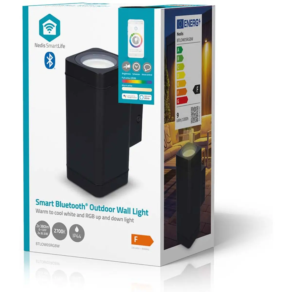 O candeeiro de parede exterior Bluetooth inteligente é a solução perfeita para iluminar jardins, terraços ou varandas. Com design de luz ascendente/descendente, cria uma atmosfera acolhedora e eficiente. Oferece diversas opções de cores, incluindo RGB branco frio a quente, e possui uma durabilidade de 25.000 horas. Através da tecnologia Bluetooth Mesh, conecta vários dispositivos para uma experiência coesa. Controle o brilho, agende a iluminação e integre com Amazon Alexa e Google Home através do app Nedis SmartLife. Uma iluminação inteligente e versátil para transformar seus espaços exteriores.