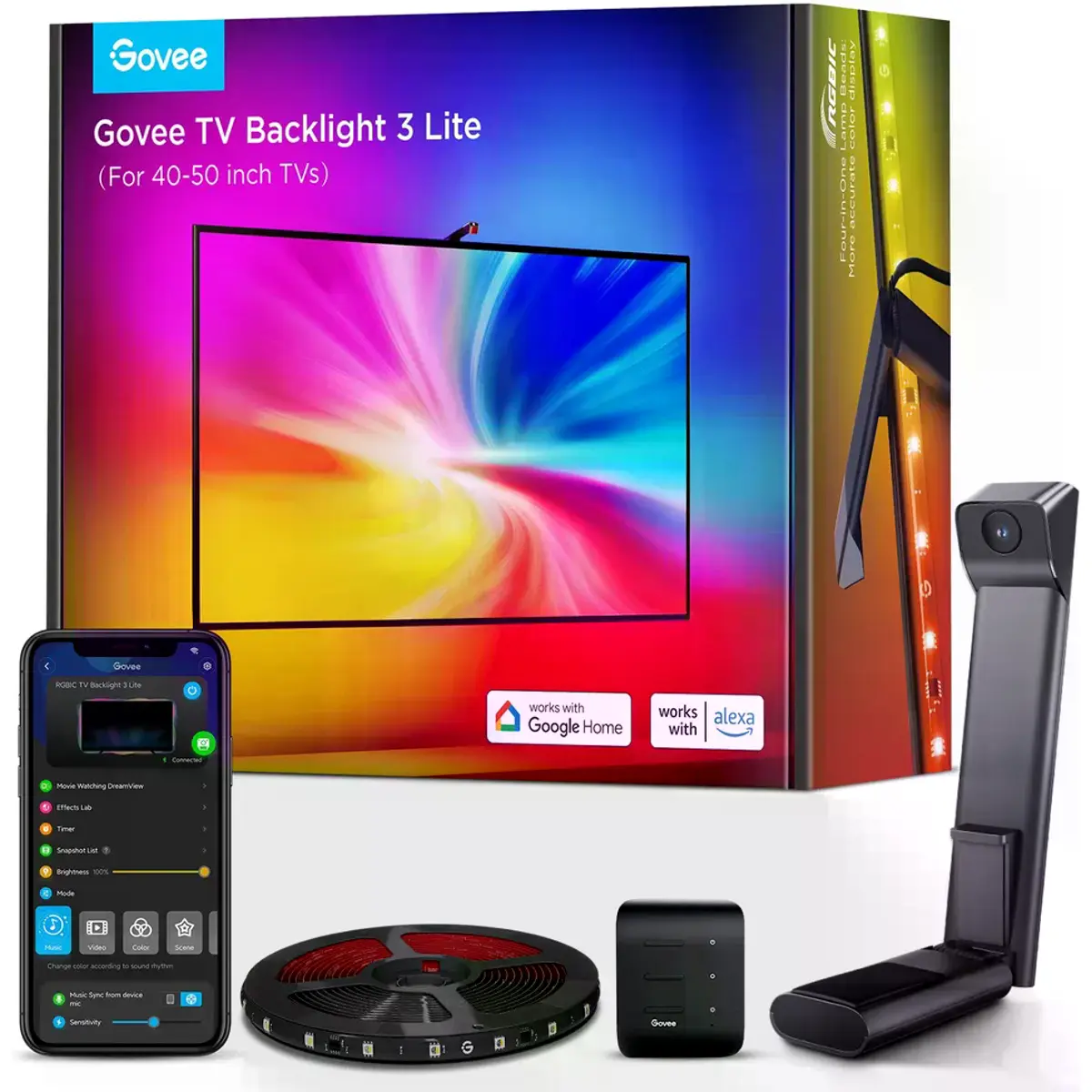 O Govee H6097 TV Backlight 3 Lite é um sistema de retroiluminação LED RGBICW para televisores de 40 a 50 polegadas. Equipado com uma câmara de correção do tipo olho de peixe, sincroniza as cores do ecrã com a retroiluminação, em tempo real, proporcionando uma experiência de visualização mais imersiva. Além disso, oferece controle via aplicação móvel e comandos de voz através da Alexa e do Google Assistant.