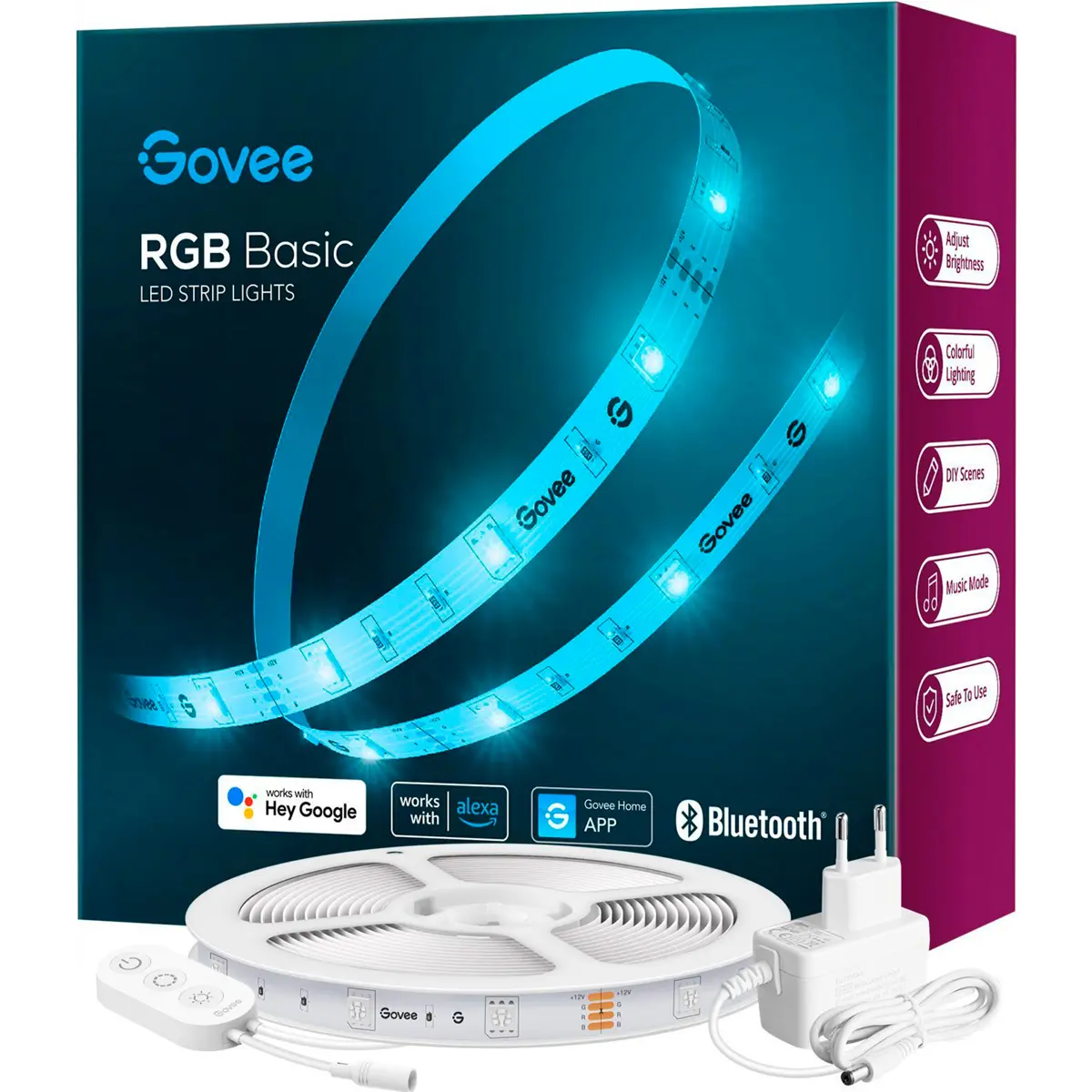 Emparelhe a lâmpada com Alexa e Google Assistant para acessar o controle de voz inteligente. Tenha acesso gratuito a diversas funções do aplicativo Govee Home, como ligar e desligar a faixa de LED, mudar a cor, ajustar o brilho, além do modo música, no qual a luz é sincronizada com o seu som preferido.