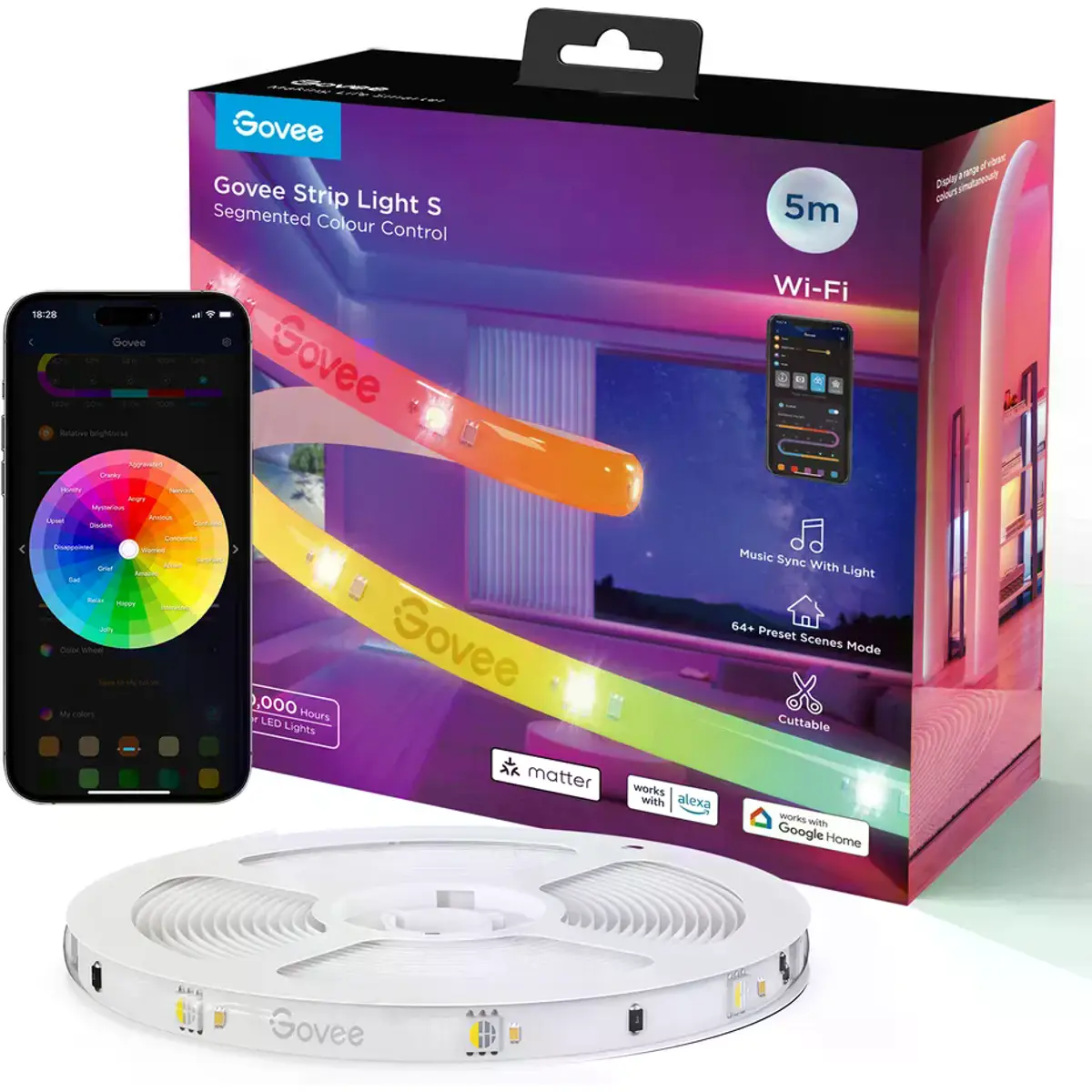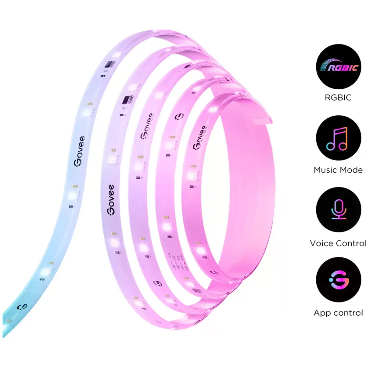 O Govee H612A funciona com o Amazon Alexa e o Google Assistant, permitindo-lhe controlar perfeitamente a sua iluminação com comandos de voz. Com suporte para Matter, pode integrar facilmente a fita em vários sistemas domésticos inteligentes. Quer utilize a sua voz, uma aplicação ou um botão clássico, tem controlo total sobre a iluminação da sua casa.