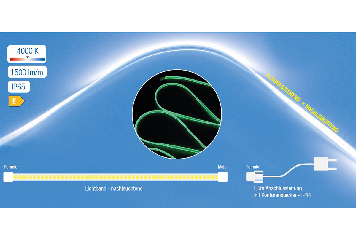 - Fluxo luminoso: 1.500 lm/m (~ 125 lm/W)